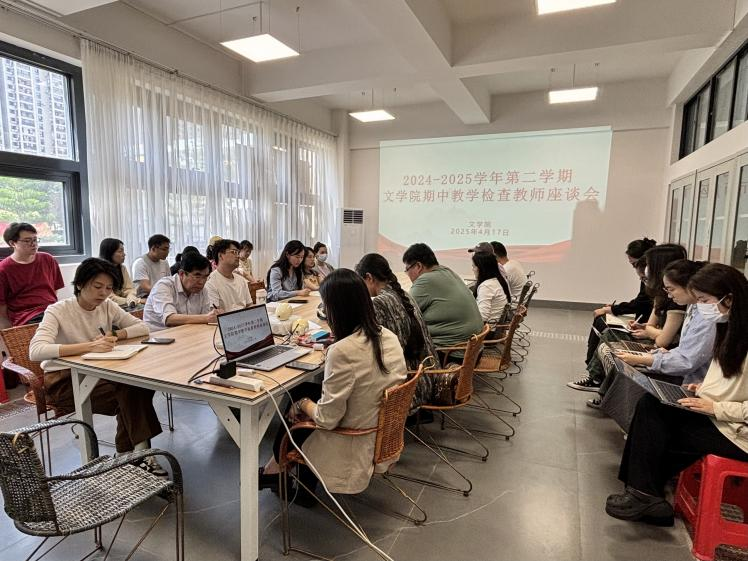 为深入贯彻落实学校期中教学检查工作部署,进一步倾听教师心声,关心关爱教师成长,促进教师之间的团队合作和凝聚力,4月17日上午,我院在南校区体育馆105召开了2024-2025学年第二学期期中教学检查教师座谈会。文学院院长黄宇鸿,常务副院长梁镨文,党支部书记岳莹,教学副院长蔡森,学工副院长裴景旺,汉语言教研室主任姜玮,汉语国际教育教研室副主任李雪及文学院全体教师参加本次座谈会。