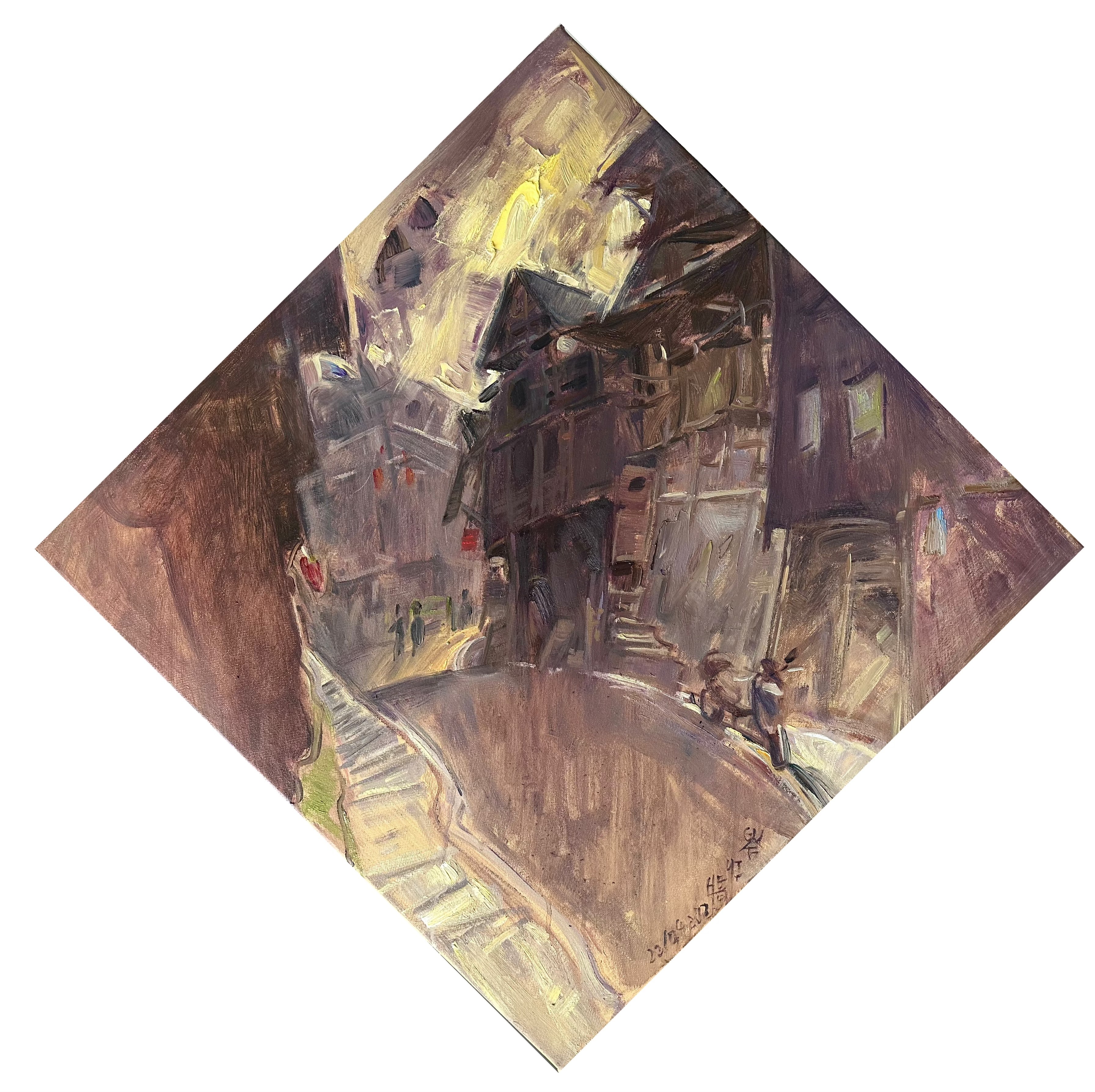 王云龙,《古巷》,60x60cm,布面油画