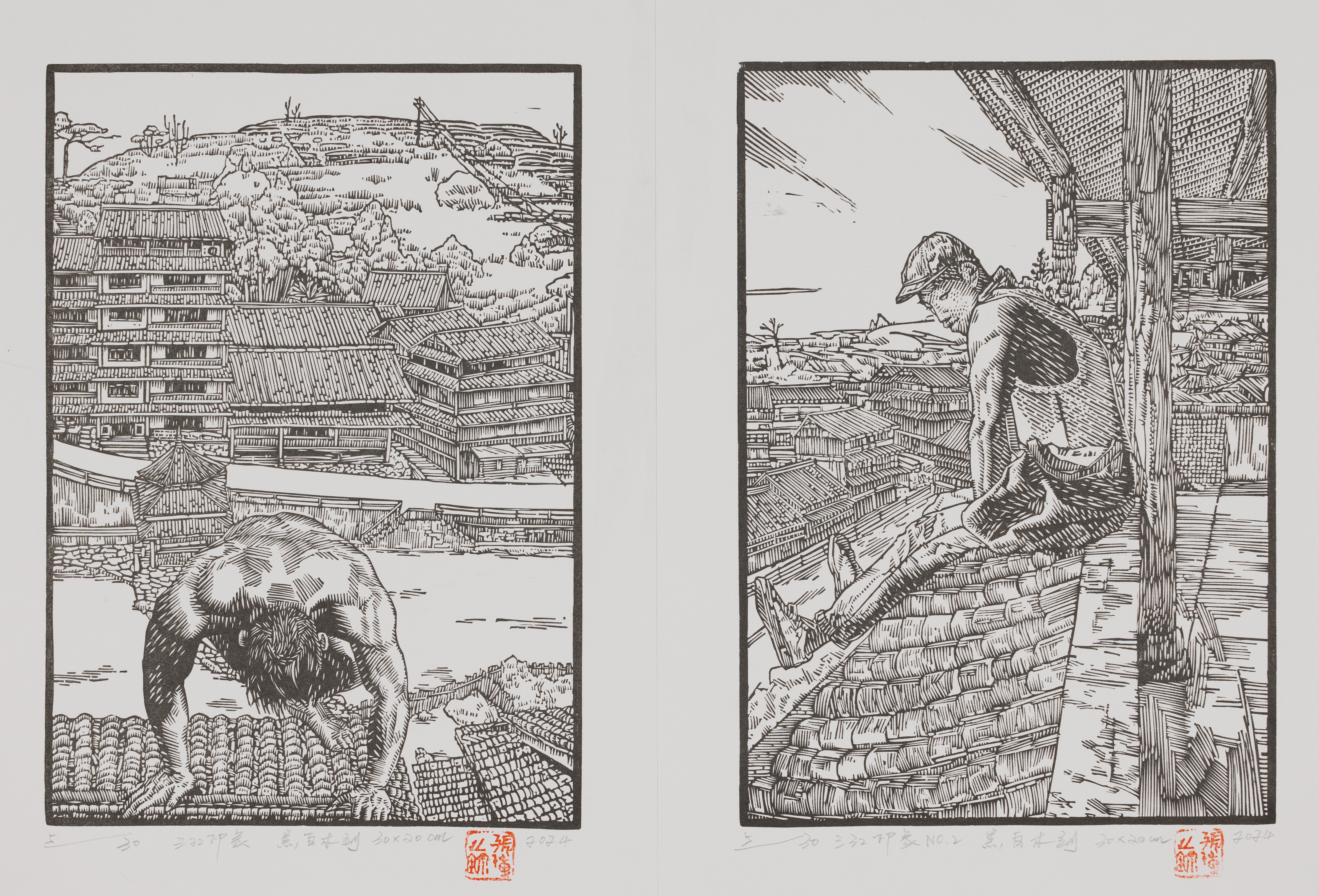 (右)陈政军,《广西映像系列》之四,40x50cm,水性材料