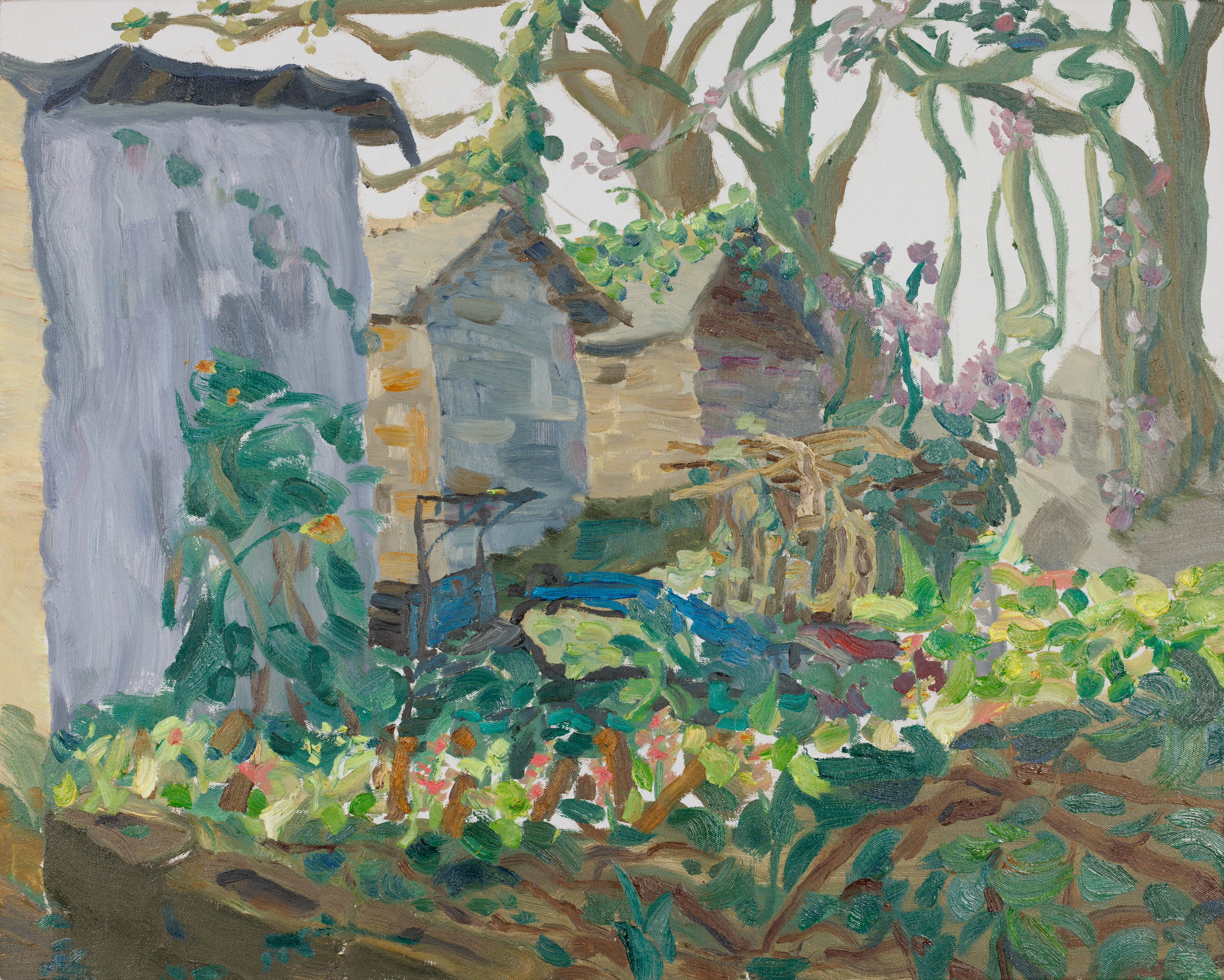 陆兴月,绘画专业,《墙隅翠影》,50x60cm,布面油画