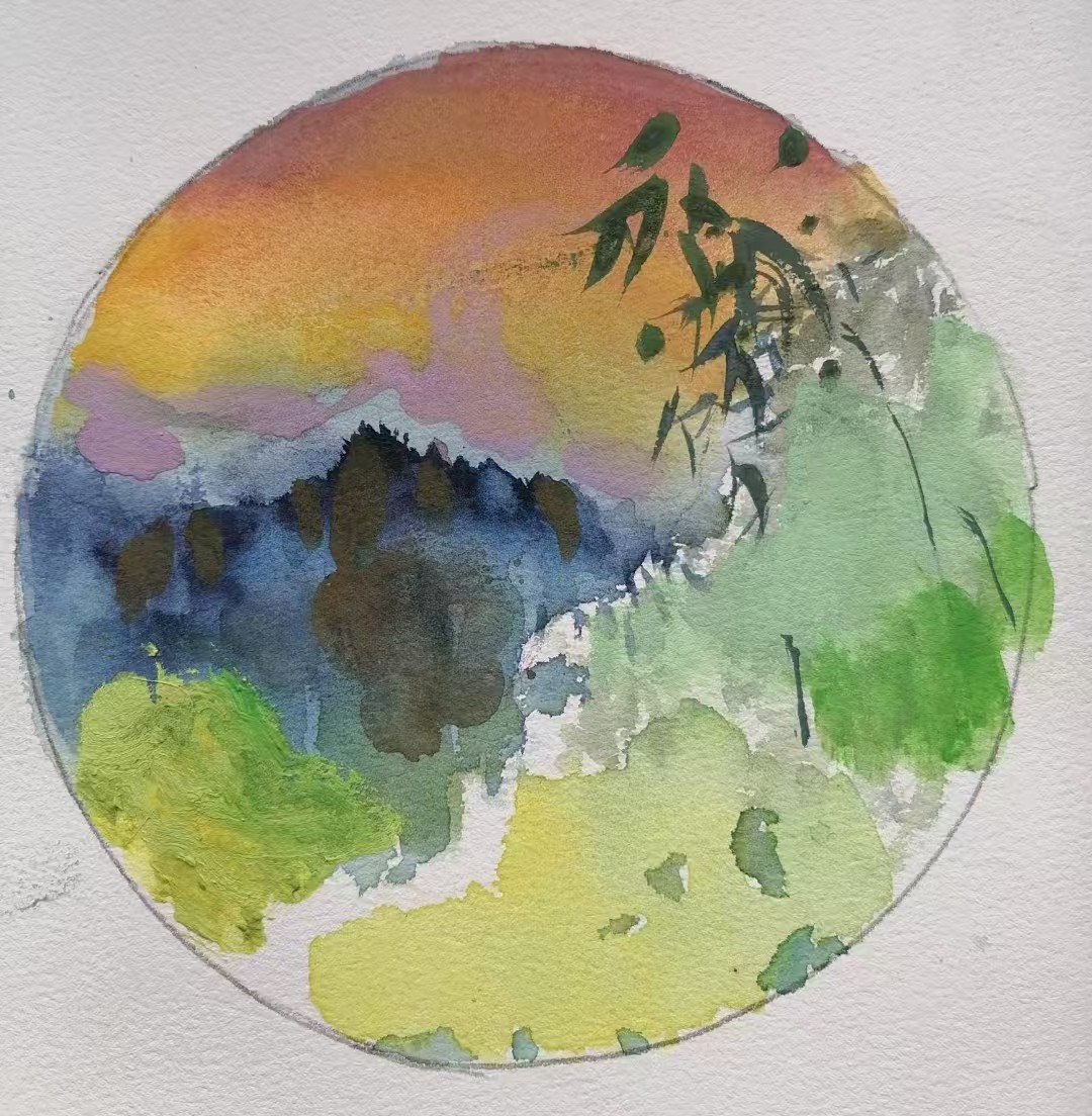 康嘉,绘画专业,《河岸边》,4开,纸本水彩