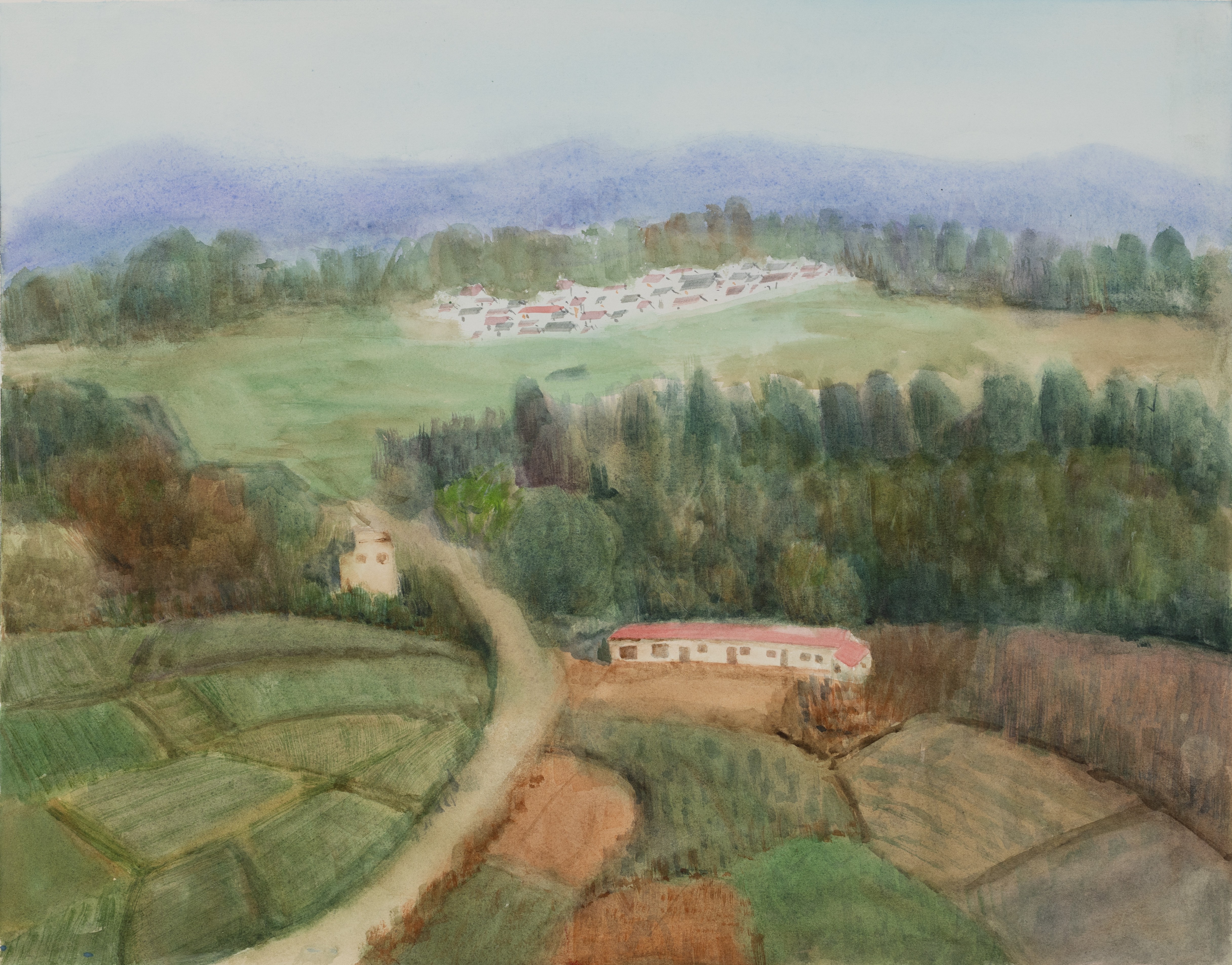 陈亚宗,《傍山而居》,30x50cm,纸本水彩