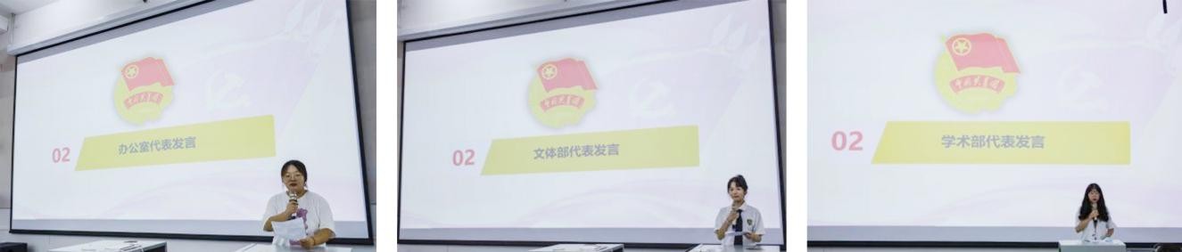 (办公室代表刘露)                              (文体部代表代玉楠)                           (学术部代表皮雲露)