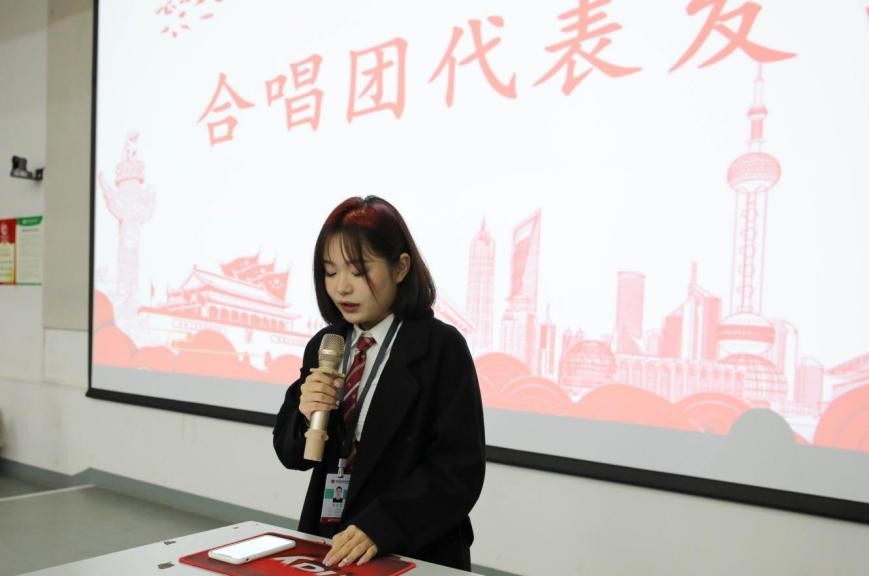 大会第四项,建筑与环境艺术学院合唱团团长雷亚蕊上台发言,对合唱团各位成员们的努力和付出表示衷心的感谢,也期待合唱团以后会越来越好,为学校争光。