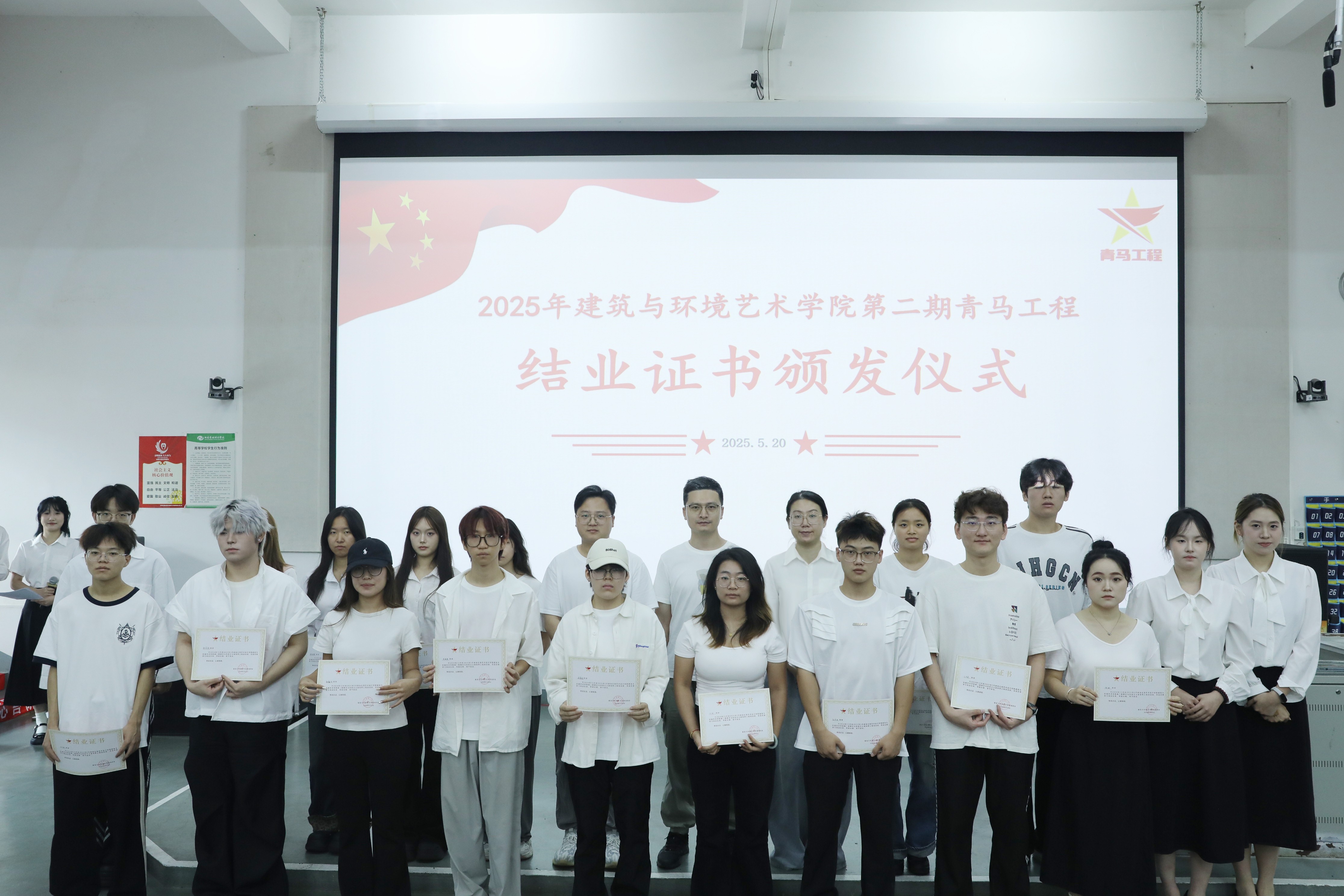 2025年5月22日下午,建筑与环境艺术学院第二期青马工程结业典礼在公德楼107举行。本次典礼旨在庆祝青马工程的圆满结束,回顾学员们在学习过程中的成长与收获并对优秀学员进行表彰。莅临本次活动的有建筑与环境艺术学院副院长张乐平,建筑与环境艺术学院分团委书记赵晓盼 、副书记陈宣辰和学员们。