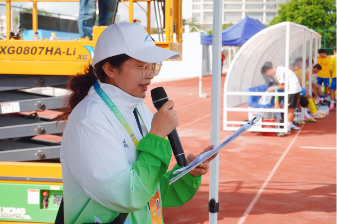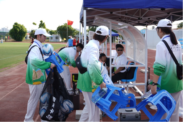 在足球比赛中,“小青芒”表现出色,他们身穿统一的志愿者服装,脸上洋溢着热情和自信的微笑。他们的工作涵盖了各个方面,包括引导观众入场、维护现场秩序、提供医疗援助、协助比赛组织等。