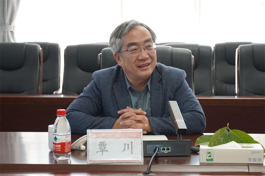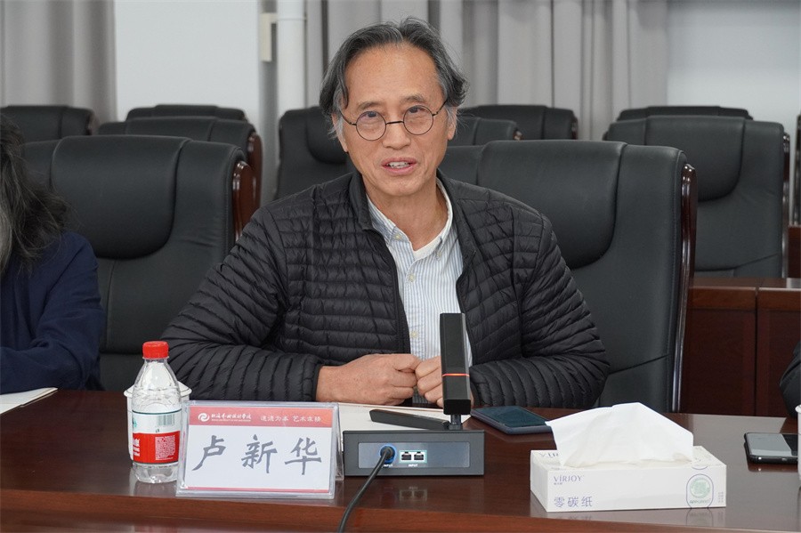 交流会上,卢新华校长代表学校对覃川书记一行的到来表示欢迎和感谢,并从学校的建校和发展历史、办学定位、办学理念、办学条件、办学成效、师资力量建设、人才培养模式、服务地方经济等方面对学校进行了简要的介绍。卢新华校长表示,北海艺术设计学院发展至今,三任校长都是清华大学美术学院的教授,双方渊源深厚,学校在各个发展阶段都深受清华大学美术学院的支持和帮助,此次覃川书记一行来到学校指导是一次难得的交流机会,加深了双方之间的友谊与合作,期望双方通过沟通交流,拓展合作深度,实现互利共赢。同时,学校也诚挚希望清华大学美术学院的领导、专家对学校发展和建设提出宝贵建议,这将对助力北艺进一步迈向行业特色鲜明、国内知名的高水平艺术类应用型高校具有重要指导作用。