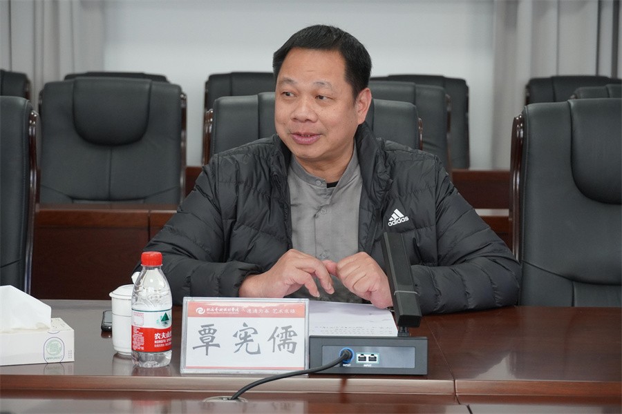 1月16日,清华大学美术学院党委书记覃川,清华大学美术学院教授、原北京美协副主席、北海籍著名雕塑家魏小明,清华大学美术学院博士后邱慕冰一行莅临我校指导交流。学校党委书记覃宪儒,校长卢新华,常务副校长胡胜,党委副书记彭仁、刘承初,副校长黄侃明、包建明,总督学王斌,纪委书记王照伟,二级学院及相关部门负责人参加交流会。交流会由我校党委书记覃宪儒主持。