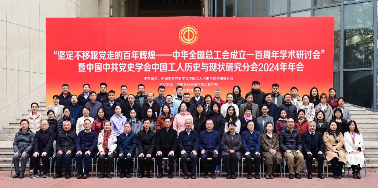 2024 年 11 月 23 日,“坚定不移跟党走的百年辉煌 —— 中华全国总工会成立一百周年” 学术研讨会暨 2024 年年会在北京中国劳动关系学院隆重召开。此次会议由中国中共党史学会中国工人历史与现状研究分会牵头主办、中国劳动关系学院工会学院协同协办,汇聚了来自中央党校(国家行政学院)、北京大学、中国人民大学、暨南大学等知名高校,中国社会科学院等顶尖科研机构,全国部分工会干部院校、工运史研究机构、工运纪念馆,以及各企事业单位工会理论工作者等近百位业界同仁,同时吸引中国劳动关系学院科研处、工会学院、马克思主义学院教师参与交流,搭建起全国工运史研究与工会工作理论创新的高端对话平台,为推动新时代工运事业高质量发展注入学术动能,是全国工运史研究领域纪念中华全国总工会成立百年的重要学术活动。