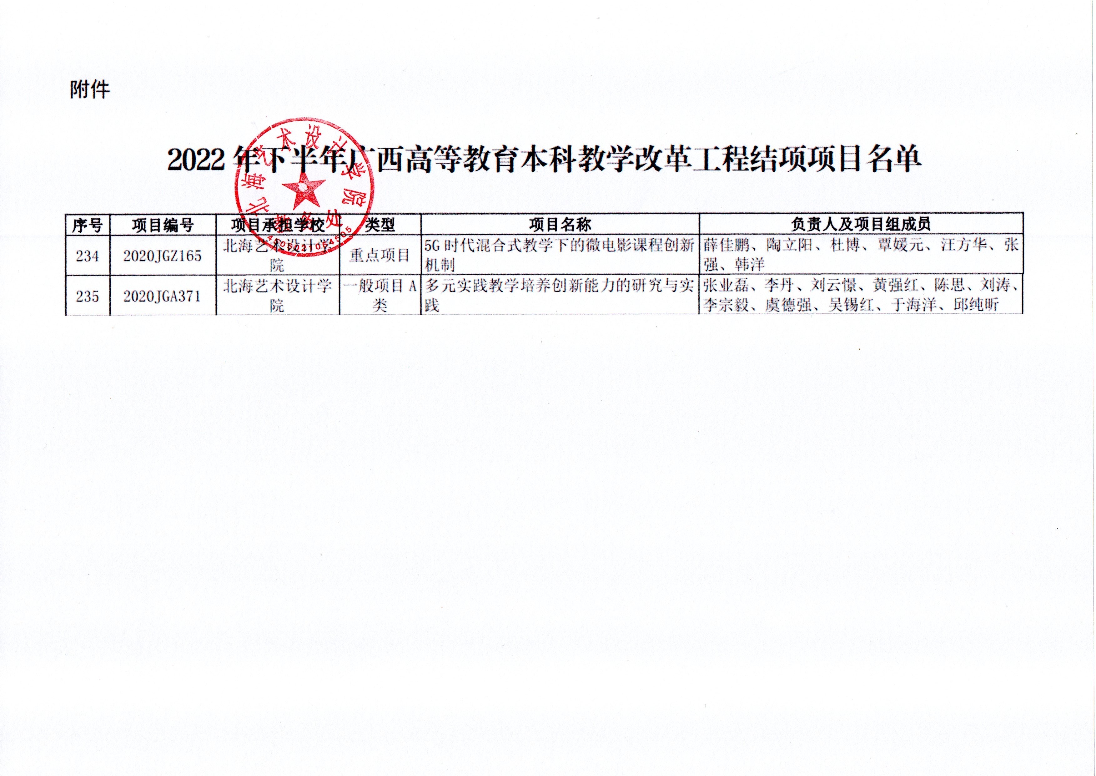 北艺教务〔2022〕59号北海艺术设计学院关于开展2022年下半年广西高等教育本科教学改革工程项目结项工作的通知