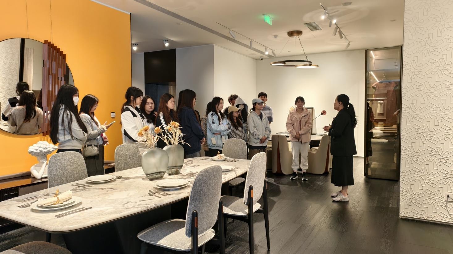 教学模式创新:突破“教室围墙”,构建“企业授课+市场调研+高端体验”模式。邀请郭瑞、张云、张浪、邓才德等资深设计师与企业负责人联袂授课,将真实案例、前沿动态融入教学,让学生在“边看边学、边触边悟”中实现理论与实践深度融合。