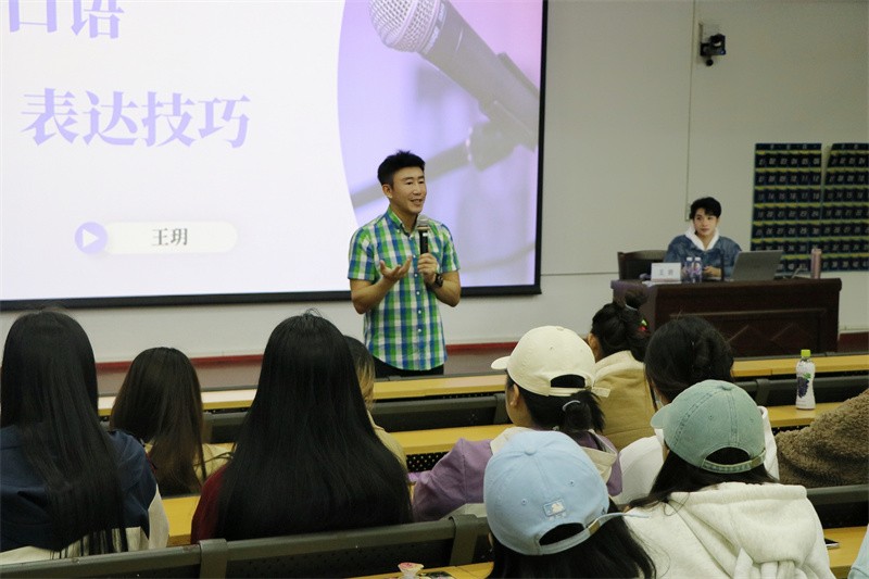 讲座过程中,王玥教授表示可以从不同的方向去寻找话题的突破口,同时不能使自己讲述的空白时间过长。他还鼓励同学们平时要多学习、多积累,做到让自己有知识储备,才能言之有物。