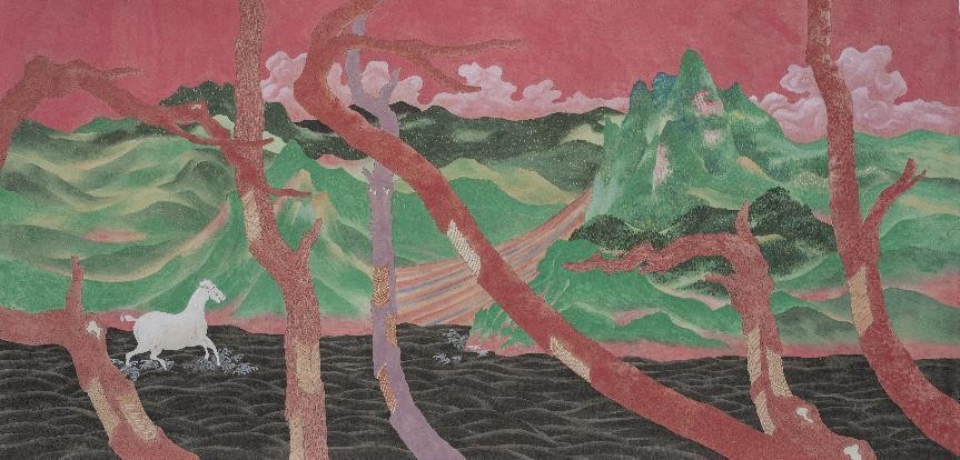 王 敛《辋川过云》67×137cm 纸本重彩 2019年