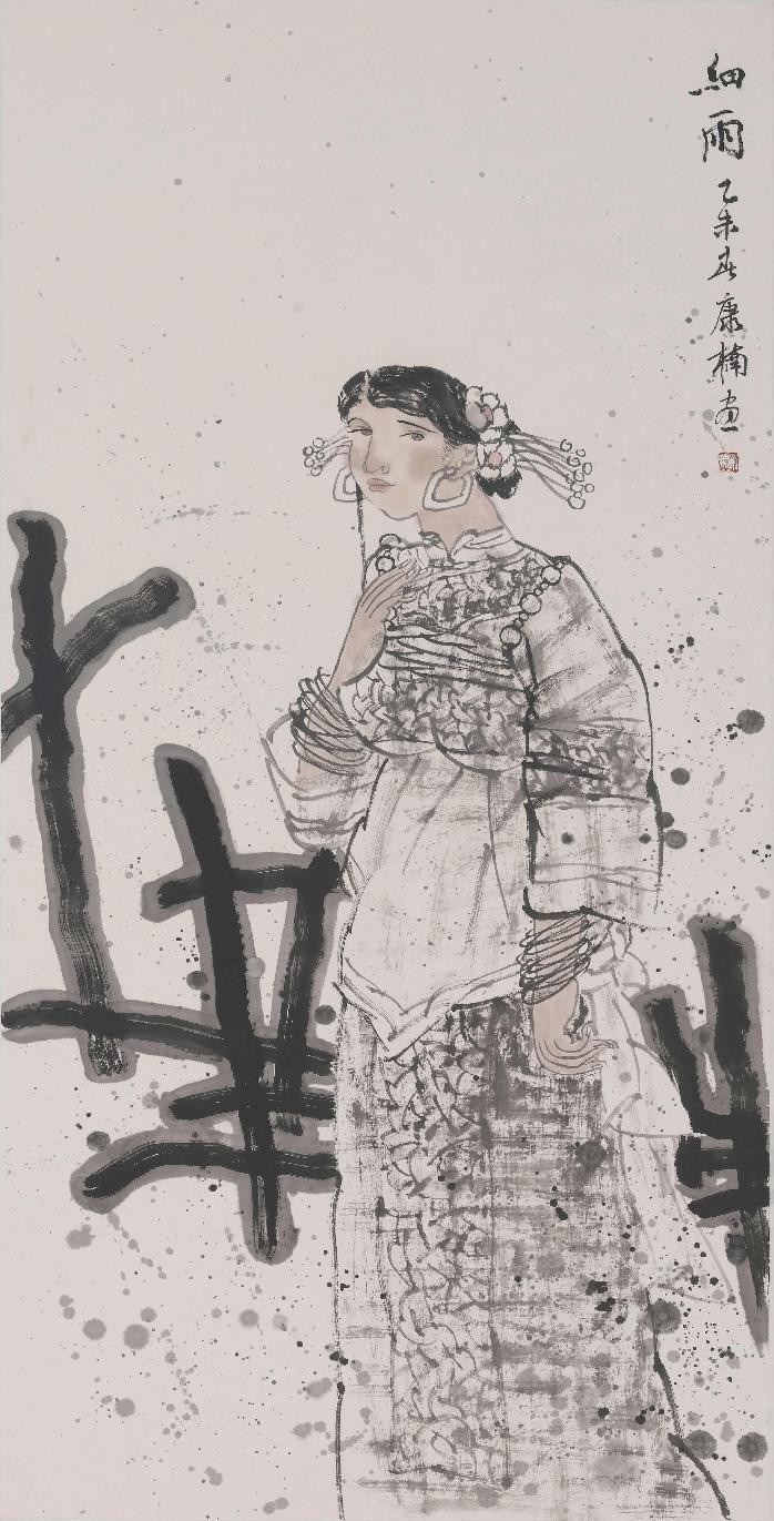 李康楠 《细雨》2015年 纸本水墨 68cm × 140cm