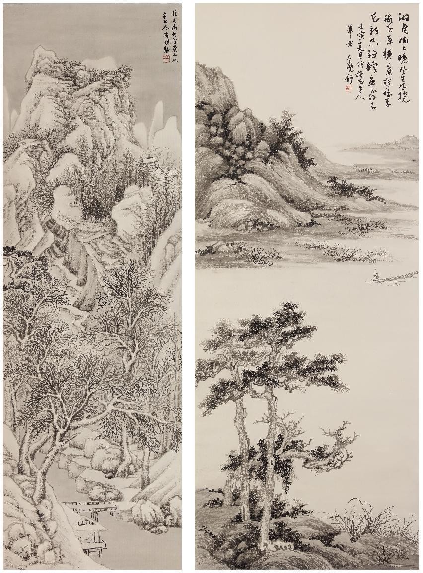 李晓静《临文征明雪景山水图》2021年 《临吴镇洞庭渔隐图》2022年 纸本水墨