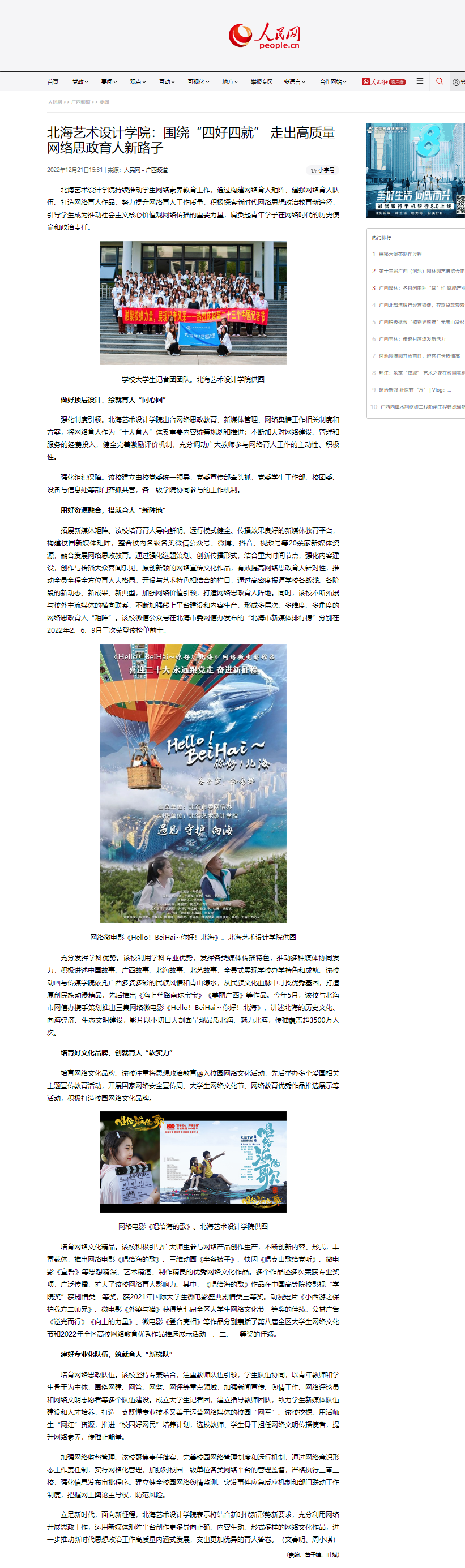 人民网:北海艺术设计学院围绕“四好四就” 走出高质量网络思政育人新路子