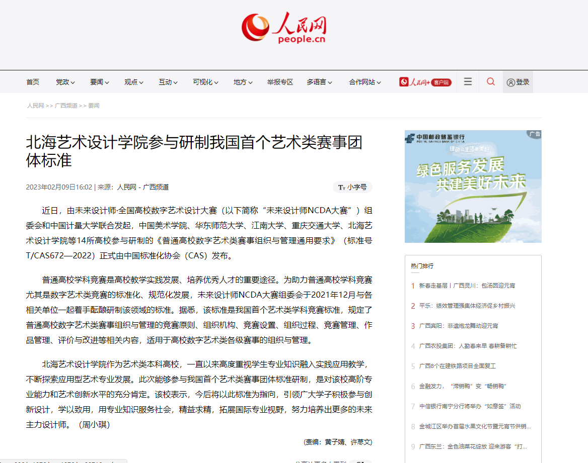 人民网:北海艺术设计学院参与研制我国首个艺术类赛事团体标准
