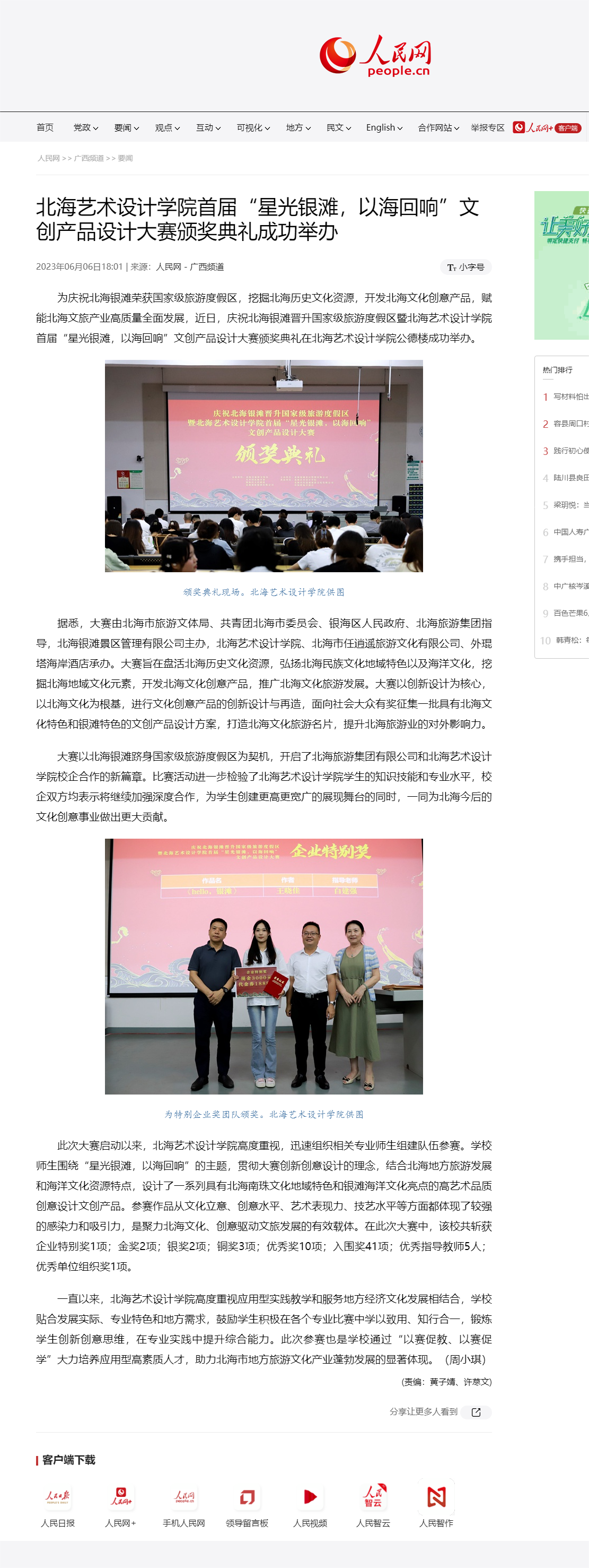 人民网:北海艺术设计学院首届“星光银滩,以海回响”文创产品设计大赛颁奖典礼成功举办