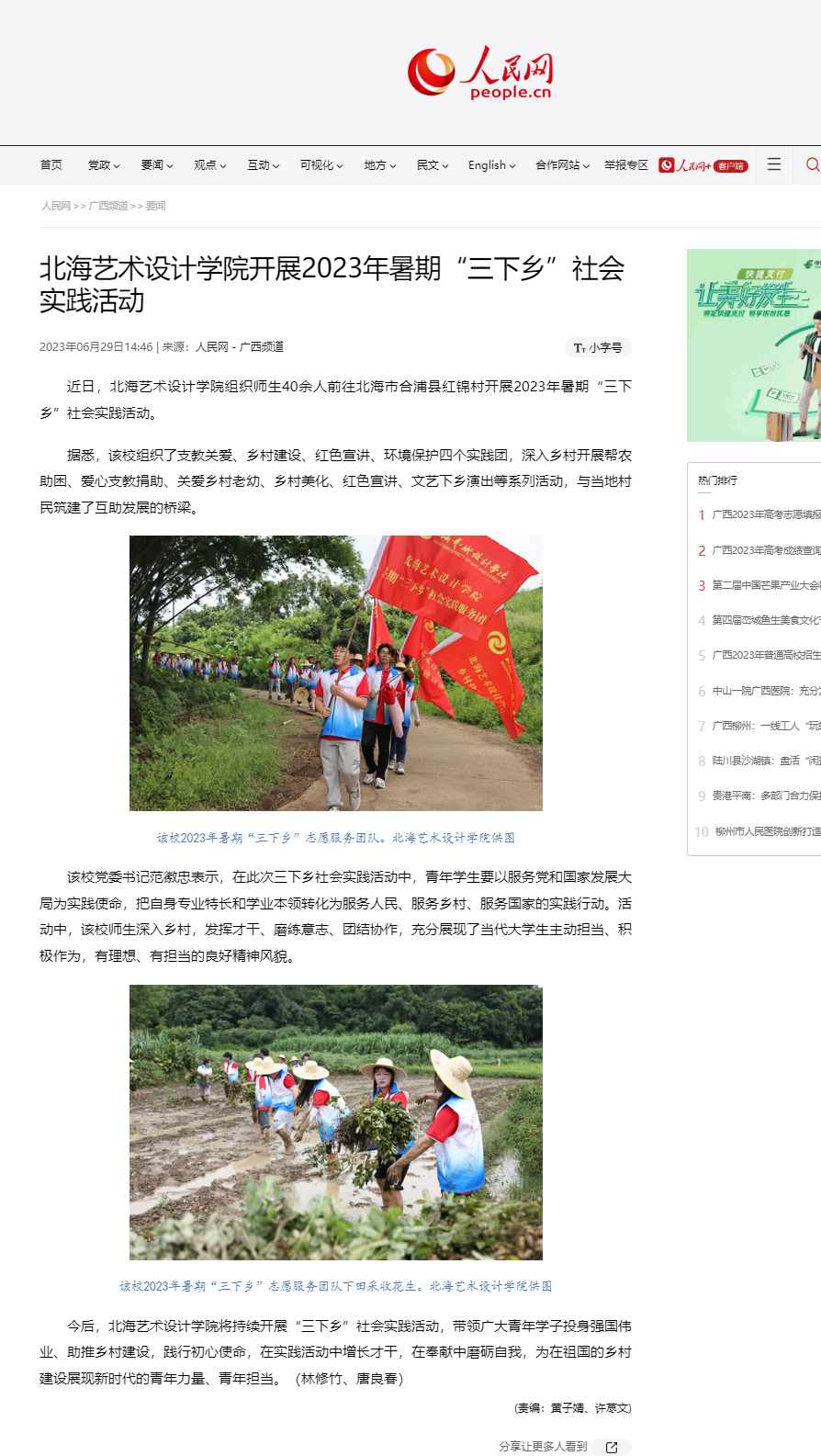 人民网:北海艺术设计学院开展2023年暑期“三下乡”社会实践活动