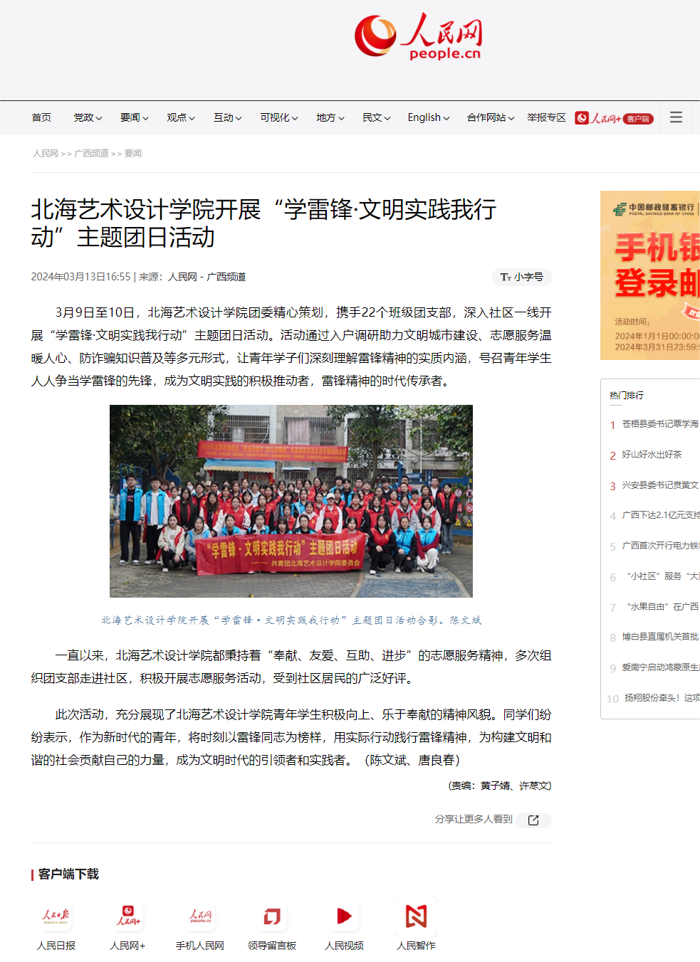 人民网:北海艺术设计学院开展学习雷锋月系列活动