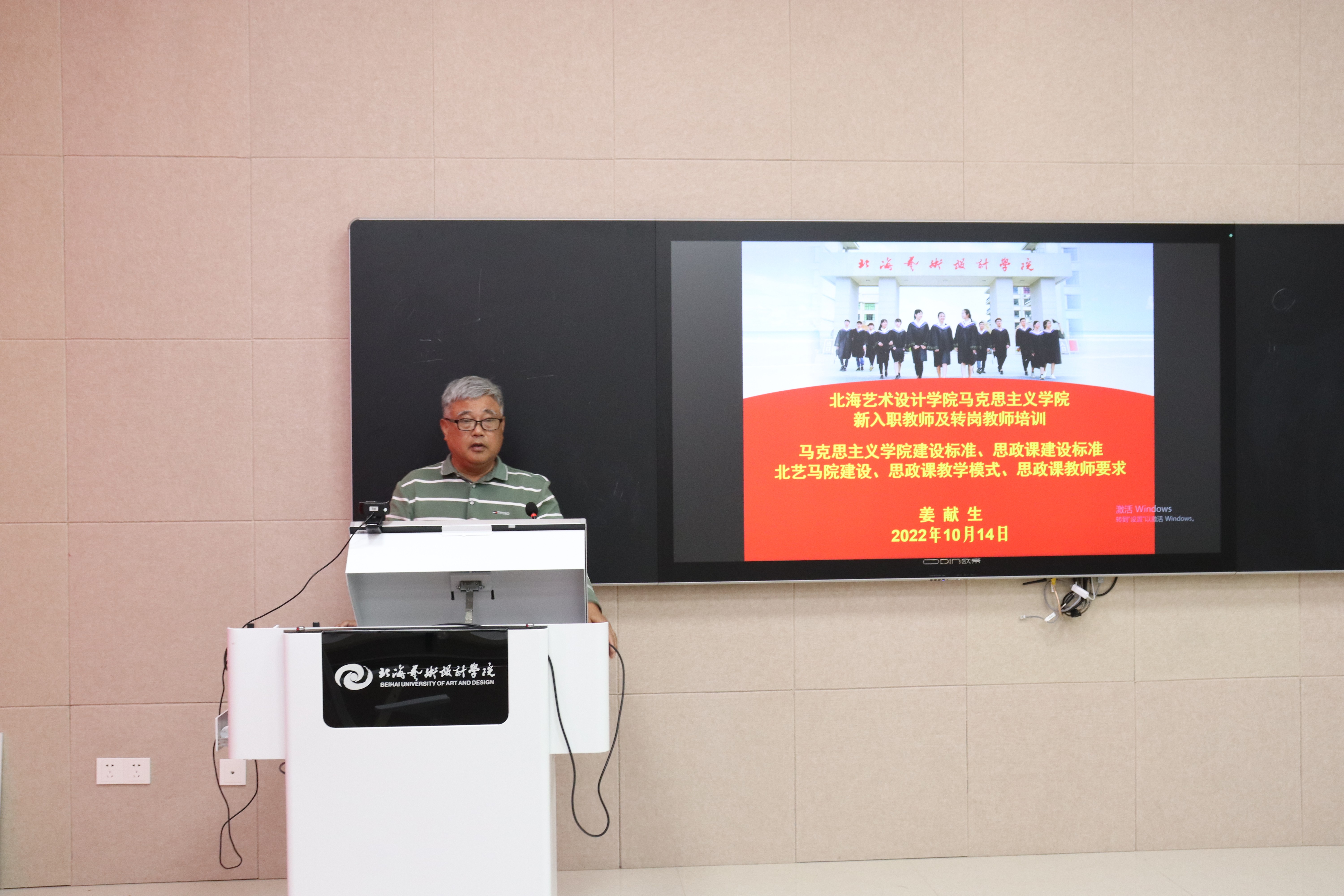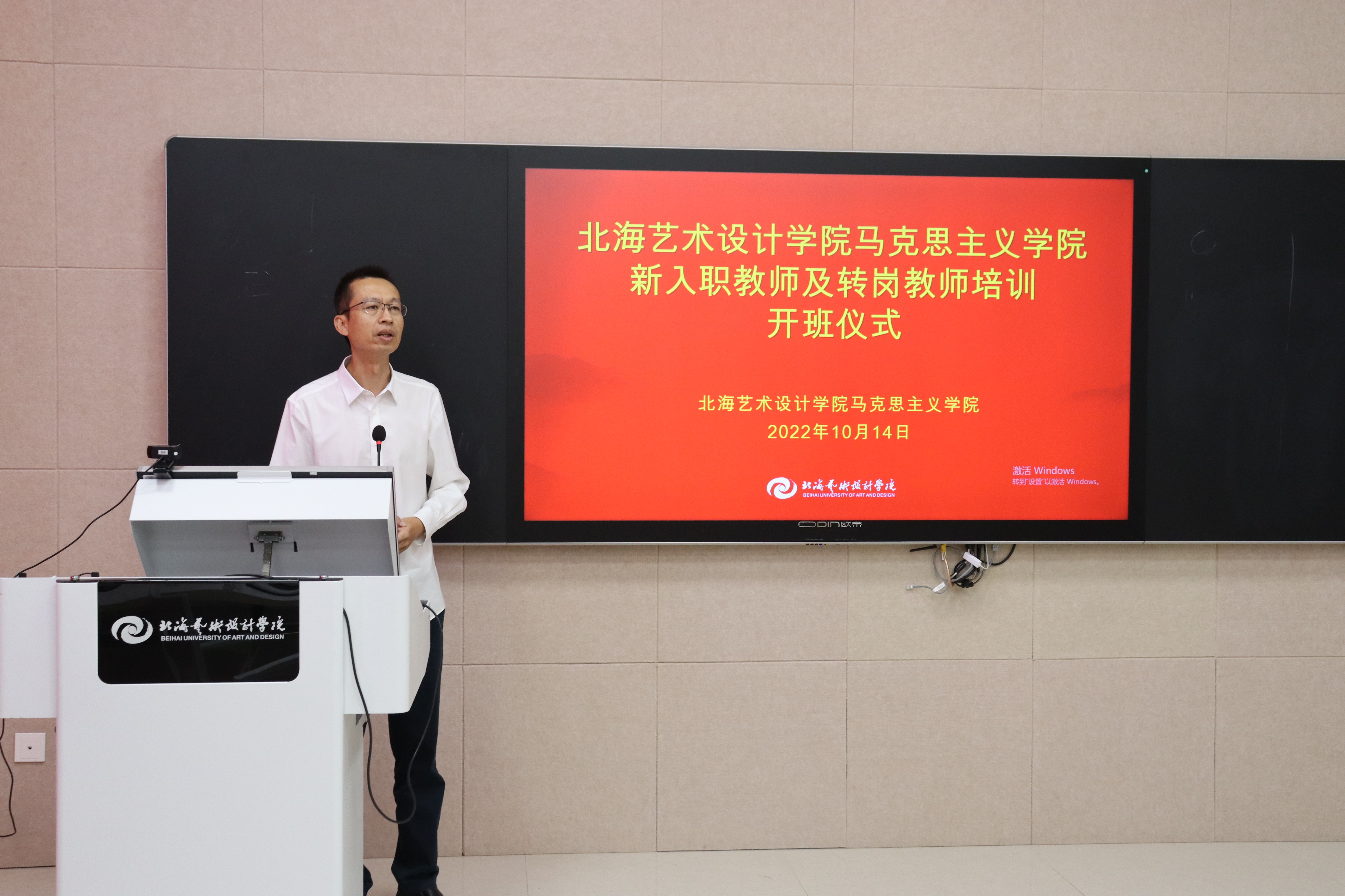 开班仪式结束后,院长姜献生从教育部颁发的马克思主义学院建设标准和思想政治理论课建设标准,以及北海艺术设计学院马克思主义学院建设要求等方面对新入职教师及转岗教师进行了专题培训。他结合当前党和国家对马克思主义学院和思政课的要求,强调“马院姓马,在马言马”的鲜明导向;要求思政教师做到“六个要”,以“八个相统一”为指导,推动思政课教学创新发展。