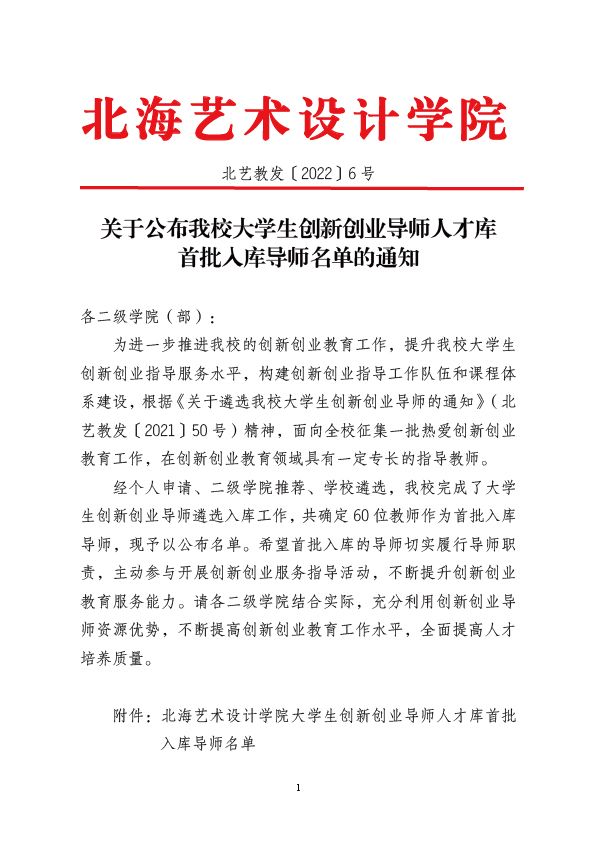 关于公布我校大学生创新创业导师人才库首批入库导师名单的通知
