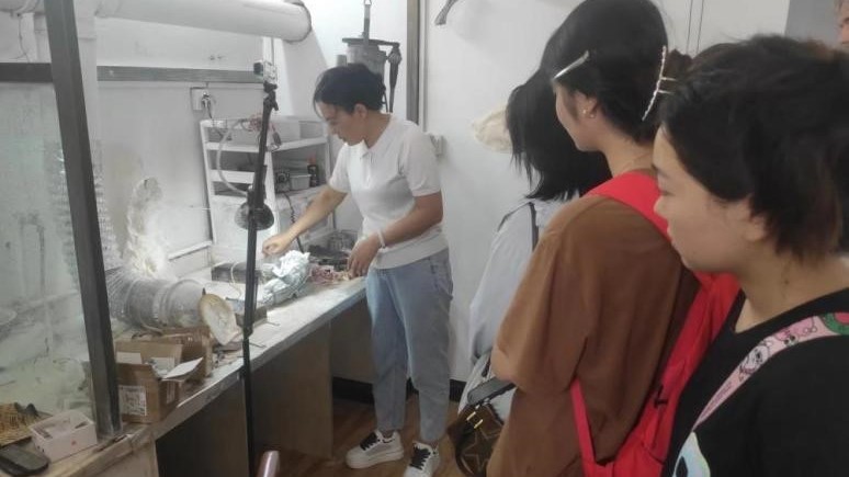 而后,龚大师在玉雕教学区为我院师生讲解了玉石的特点,并示范玉雕的制作步骤,同学们在亲身体验玉雕制作的过程中,对玉石艺术制作流程与文化底蕴有了更深入的了解,并加深了对玉石雕刻的浓厚兴趣。