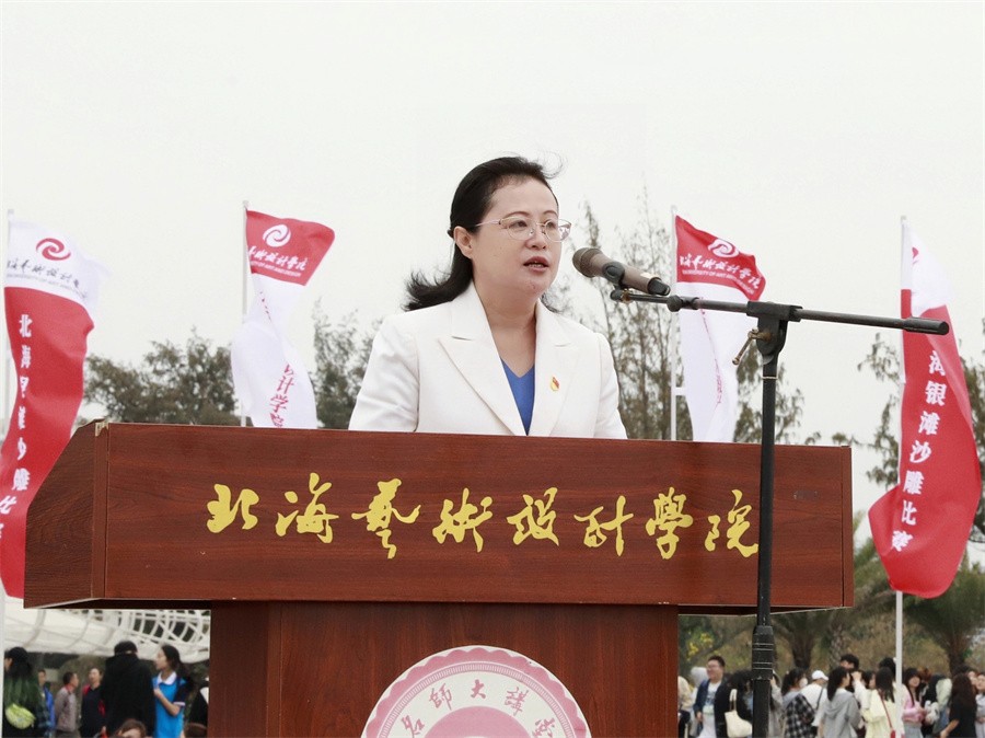 迎着北部湾灿烂的朝阳,4月8日 ,北海银滩沙雕比赛暨北海艺术设计学院沙滩运动会在北海市银滩公园举行。北海旅游集团有限公司副总经理李小军、学校党政领导、全校师生参加开幕式。