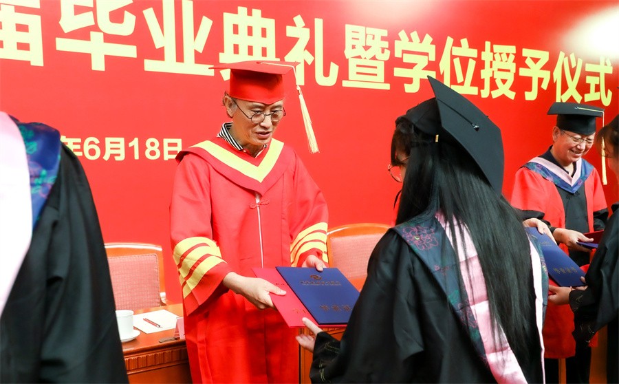 学校领导及学位评定委员会委员为毕业生颁发证书