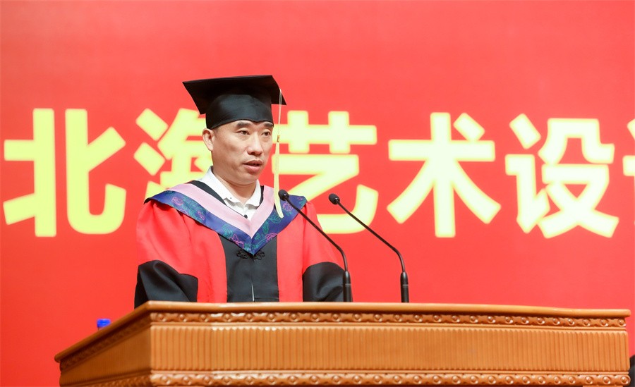 校长卢新华以《不改初心 矢志奉献》为题,为即将离开校园,扬起人生理想新风帆,走向新生活的2023届毕业生致以最热烈的祝贺和最美好的祝福。他指出,四年来,广大毕业生在学校“北海北京双城育人,名校名师双名引领”下追逐理想,不断成长;在“道德为本、艺术求精”的办学理念洗礼下,启迪思想灵魂,升华人格境界,在北艺校园里留下了难以忘怀的青春故事和奋发向上的励志事迹。在毕业生们开启人生新旅程之际,卢新华对2023届毕业生提出三点希望:一是要坚定理想信念,担当使命,矢志奉献国家和人民。既要有远大的理想信念、鸿鹄之志、家国情怀,更要有使命担当,把个人艺术追求和理想融入国家前途、民族命运、社会大义人民福祉,做有情怀、有大义、有担当的新时代青年;二是要勇于挑战自我,不忘初心,做德艺双馨优秀人才。敢于面对挑战,勇于抓住机遇,以青年人的锐气站在时代前列,勇毅前行,坚定信心,勇立时代潮头,争做时代先锋,同时要牢记“道德”校训,明道立德,不忘初心,以德铸魂,磨砻淬砺;三是要扎根生活沃土,认真做事,不负时代赋予的使命。以兢兢业业、一丝不苟的工作态度,精益求精、尽善尽美的精神追求认真做事,真抓实干、精益求精、开拓进取,关心人民对美好生活的向往和需求,用高尚的文化艺术新风引领社会风尚,做有信仰、有情怀、有担当的文艺工作者。卢新华寄语广大毕业生展翅飞翔、乘风破浪,勇做走在时代前列的奋进者、开拓者、奉献者,成为祖国文化艺术和经济建设发展的栋梁之材。他还表示,母校北艺将永远是毕业生们坚强的后盾、温暖的港湾,希望大家梦想成真,事业有成,捷报频传。