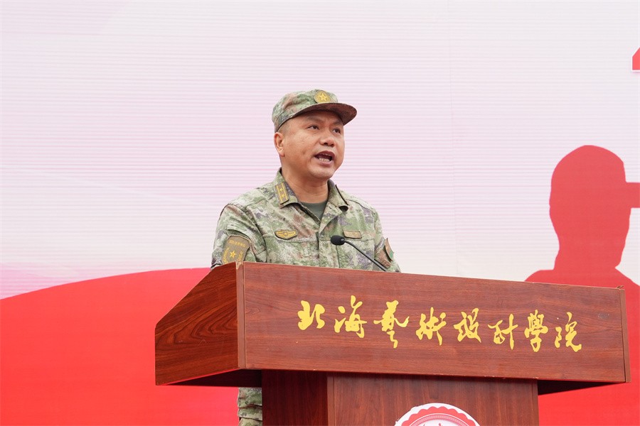 北海市海城区人民武装部副部长涂军红在讲话中阐述了军训的重要性。他指出加强国防教育是国家生存发展的客观需要,是国防建设的一项重要举措。他希望同学们在军训中严格遵守纪律,端正态度,坚持到底,努力学习基本知识和技能,培养热爱祖国热爱人民的爱国主义精神。他还对全体军训教官提出要求:发挥军队的优良传统和作风,高标准要求,精心施教,以身作则,以自身良好素质形象感染和引导同学们,保质保量完成此次军训任务。