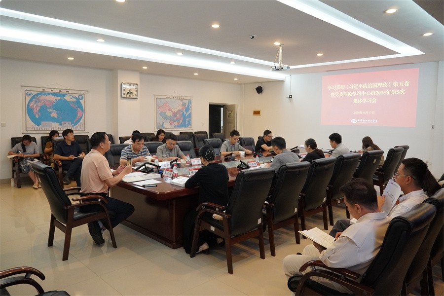 10月17日下午,学校党委理论学习中心组召开2025年第5次集体学习会,专题学习《习近平谈治国理政》第五卷。党委书记覃宪儒主持学习会。