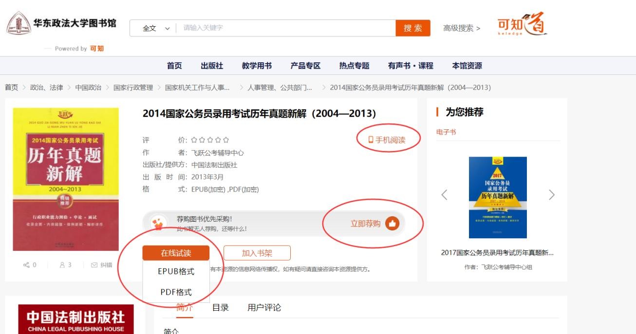 2、电子书试读和荐购
