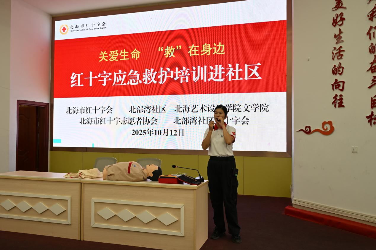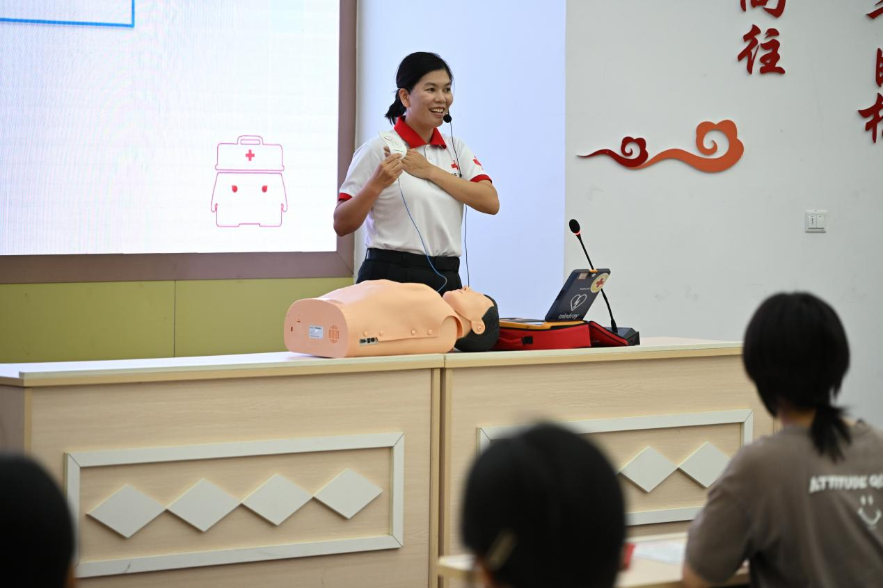 紧接着,北海市红十字会林老师向志愿者们培训应急救护知识,培训涵盖了海姆立克急救法、昏厥与癫痫发作的现场处理、创伤包扎、心肺复苏以及AED的使用方法等多个实用模块。