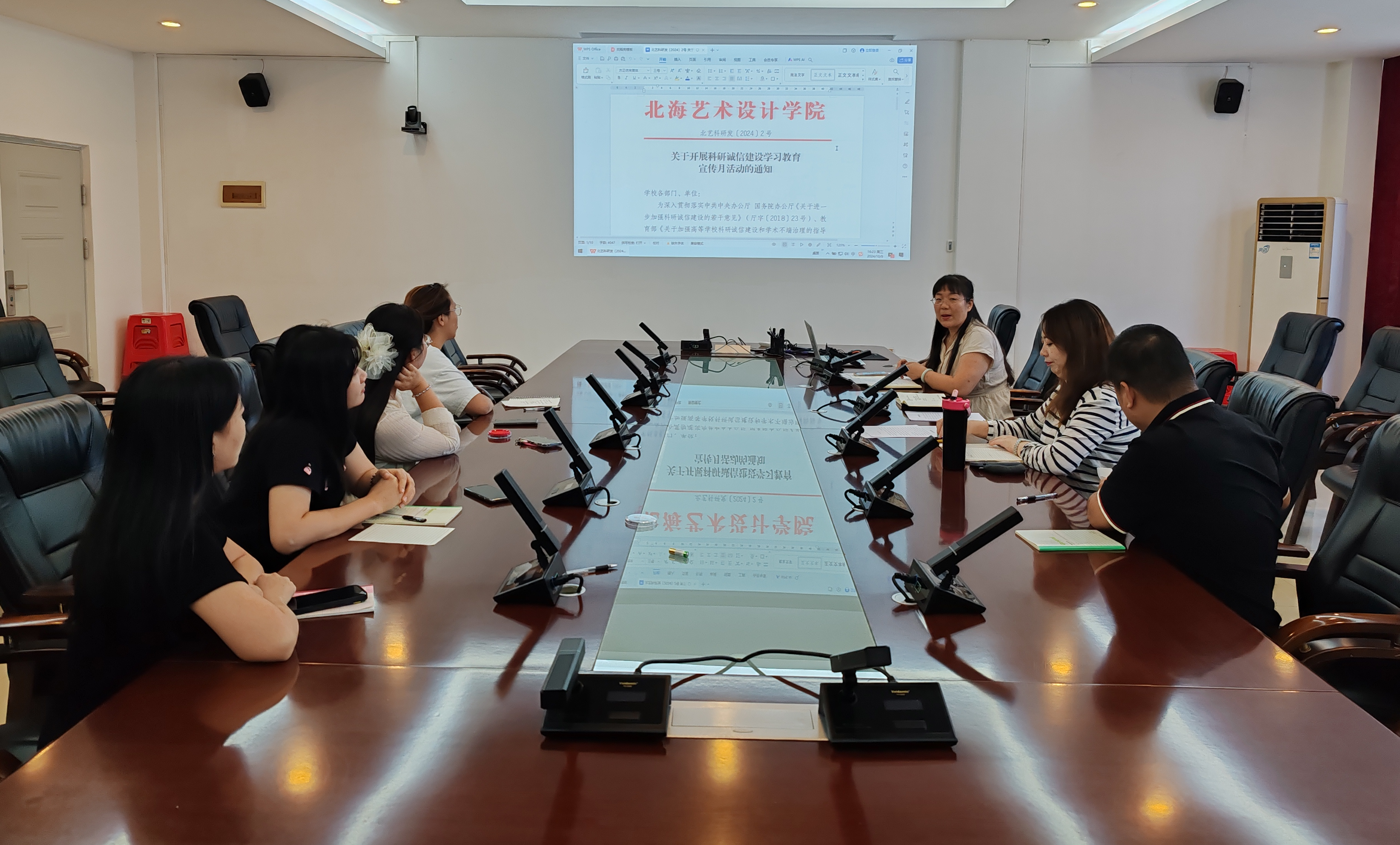 本次会议主要解读了学校科研处下发的《关于开展科研诚信建设学习教育宣传月活动的通知》,帮助全体成员统一思想,强化对科研诚信建设的认识。会上,科研联络员张冰洁介绍了多项学术不端的真实案例,并且借助科研处汇总的各类科研学术相关的文件,向人事处全体成员阐明了科研诚信的重要性,并针对界定模糊的科研诚信问题进行了积极的讨论。会议最后,人事处全体签署了“科研诚信承诺书”。