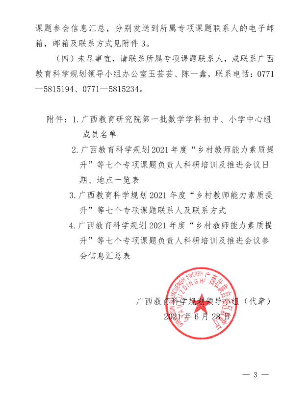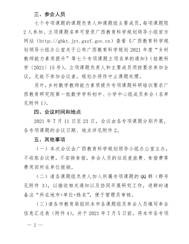 广西教育科学规划领导小组关于召开广西教育科学规划2021年度“乡村教师能力素质提升”等七个专项课题负责人科研培训及推进会议的通知