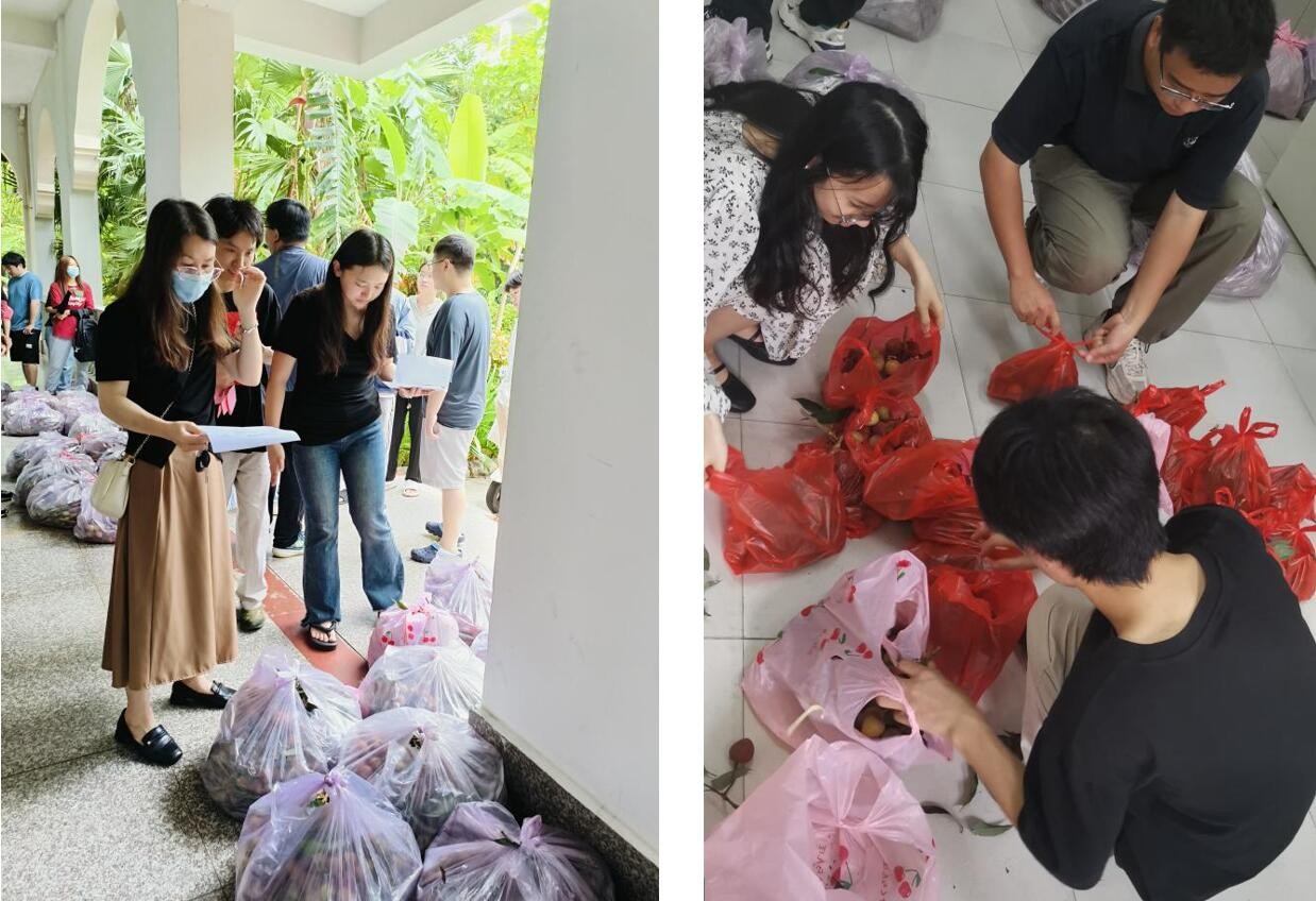 为确保能将福利顺利发放到每一位美术学院学生手中,62日上午,美院学工办便与校学工处做好对接,学工办教师全员到场共同分装美术学院各班级荔枝包裹,并将数百斤荔枝运回以便学生们领取。学工办教师在此次活动中密切关注每一个班级的领取进度,认真分装荔枝,确保不漏一人、尽数发放。