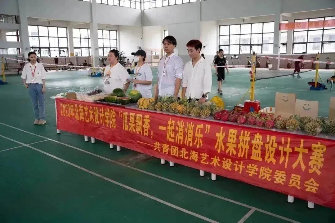 为了丰富学生课余生活,活跃校园气氛,培养学生的创新思维,发掘大学生的动手能力和增长创新意识,同时通过开展丰富多彩的活动来弘扬创新精神,体现大学生朝气蓬勃、积极向上的精神状态,北海艺术设计学院于5月7日15:30在西区食堂三楼举行“瓜果飘香,一起消消乐”水果拼盘设计大赛。
