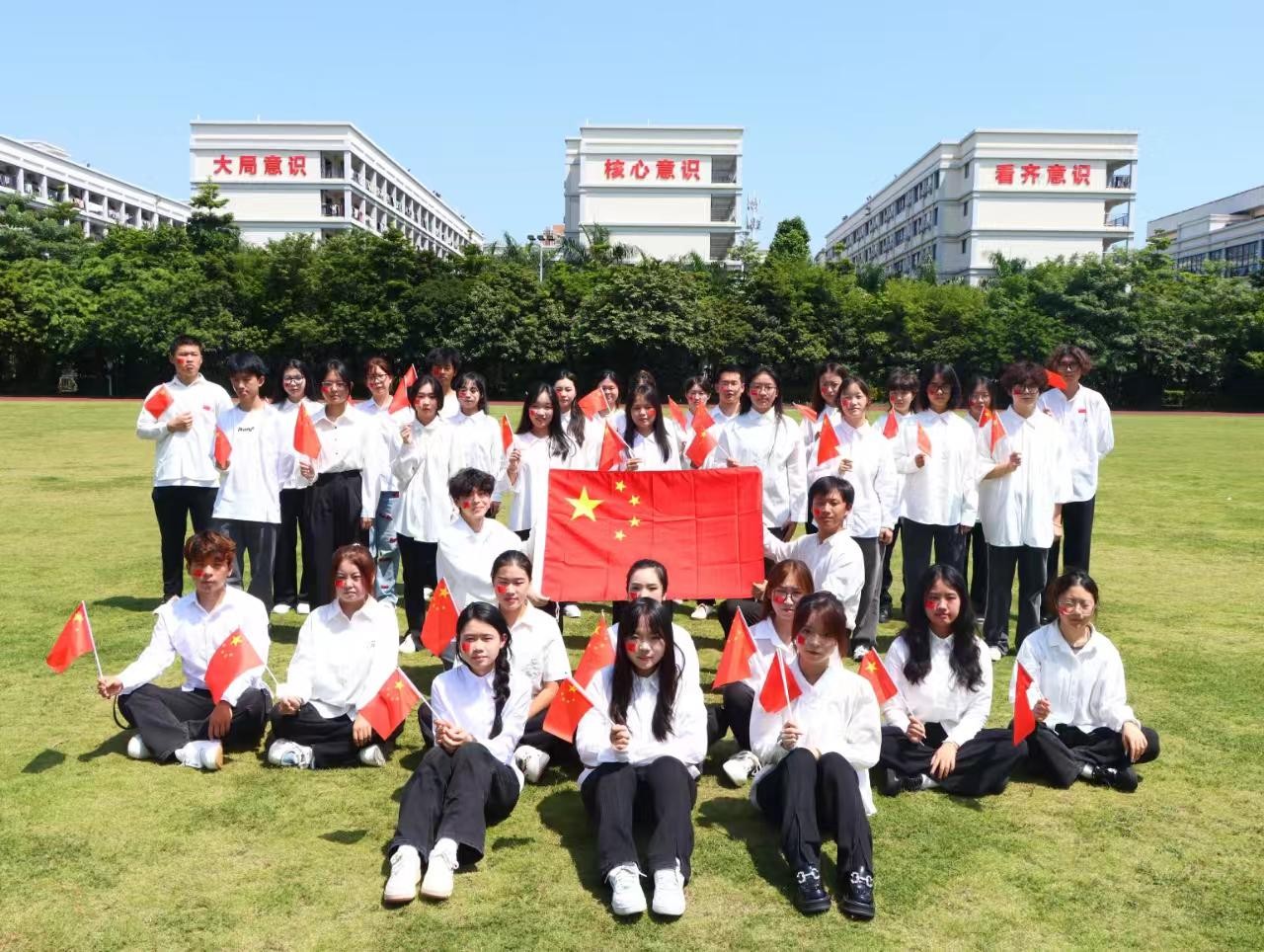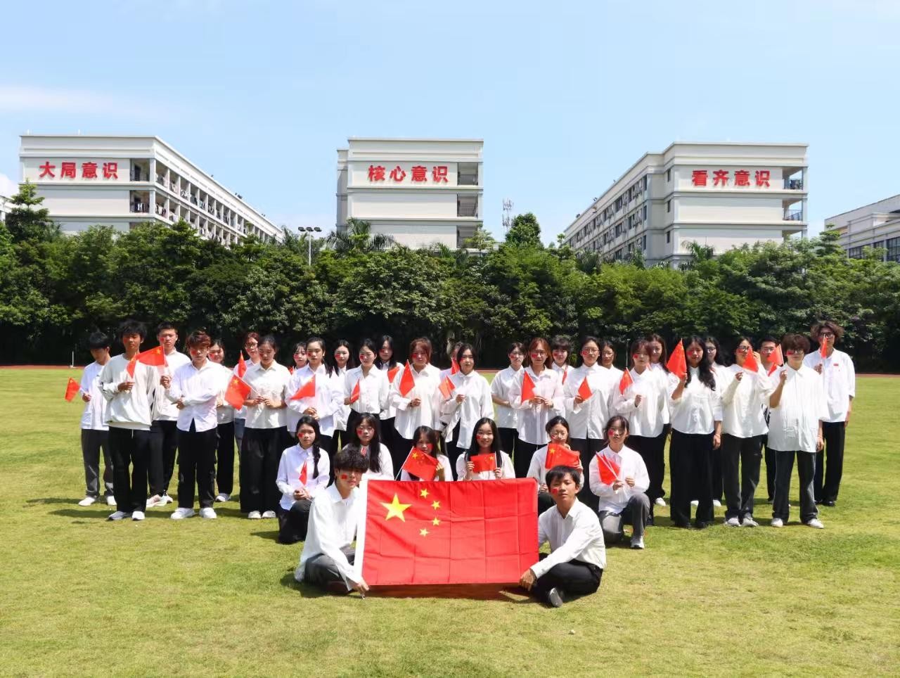 为庆祝中华人民共和国成立75周年,我校积极开展了“我和国旗合个影”活动,同学们带着自信的笑容,以昂扬的姿态,沐浴在阳光下与国旗合影,用特别的方式,向祖国送上真挚的祝福。
