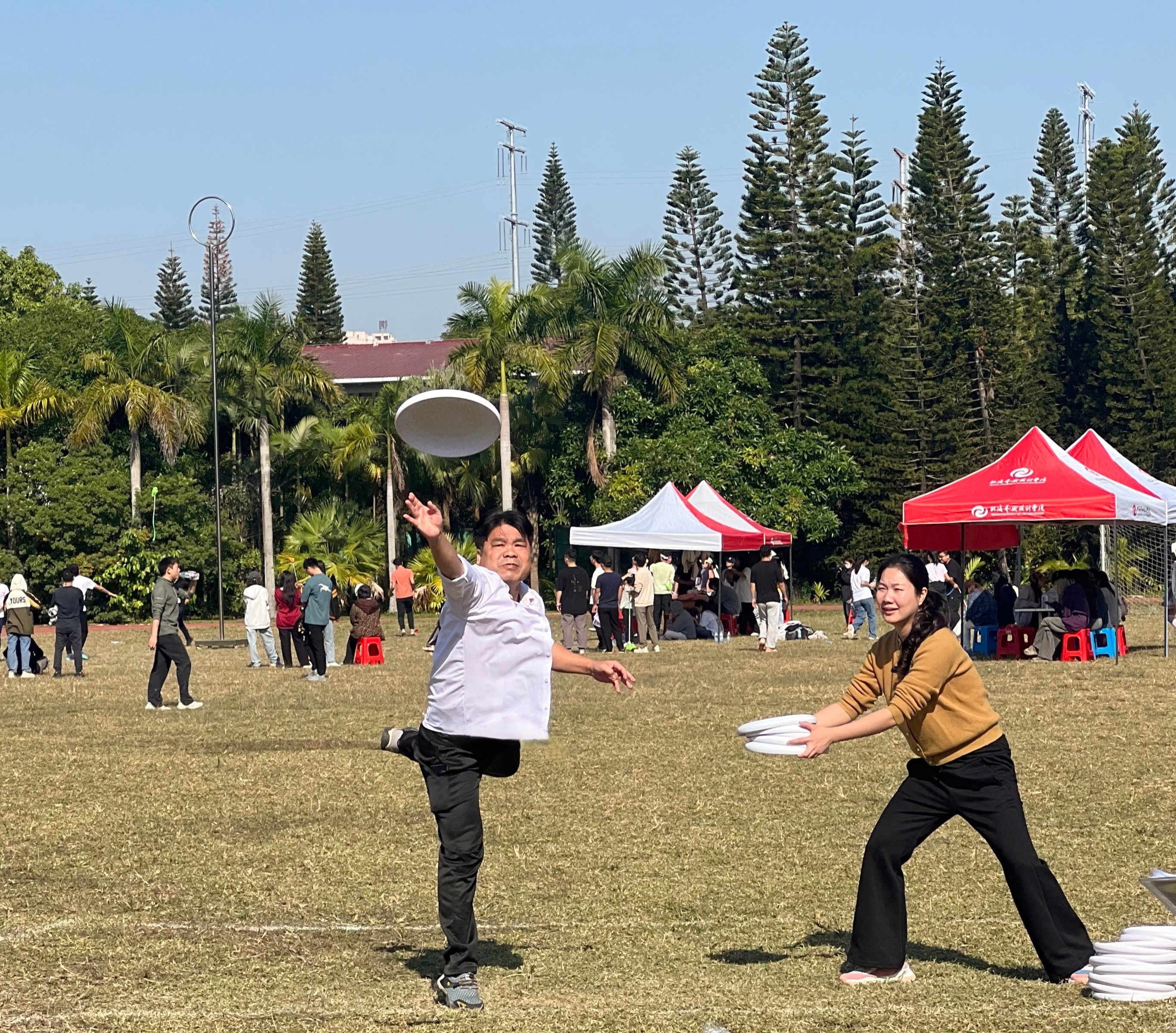 除了学生竞赛外,教职工竞赛也是本次运动会的一大亮点。哲学学院的老师们一改往日严肃认真的教学形象,化身活力四射的运动员。他们在赛场上大展身手,热情高涨,欢声笑语不断,展现出了与平时教学截然不同的一面。这些趣味比赛不仅让老师们放松了身心,更拉近了师生之间的距离。
