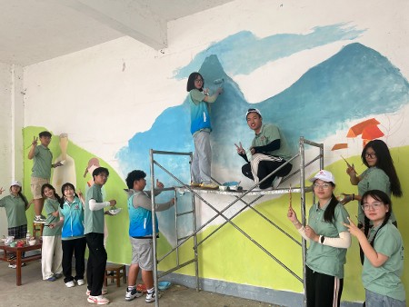 师生们结合乡村风貌,在户外创作了系列乡村振兴主题墙绘,用艺术画笔为村容村貌增添亮丽色彩。此外,团队还积极参与助农劳动,在实践体验中感悟乡村振兴的丰富内涵。