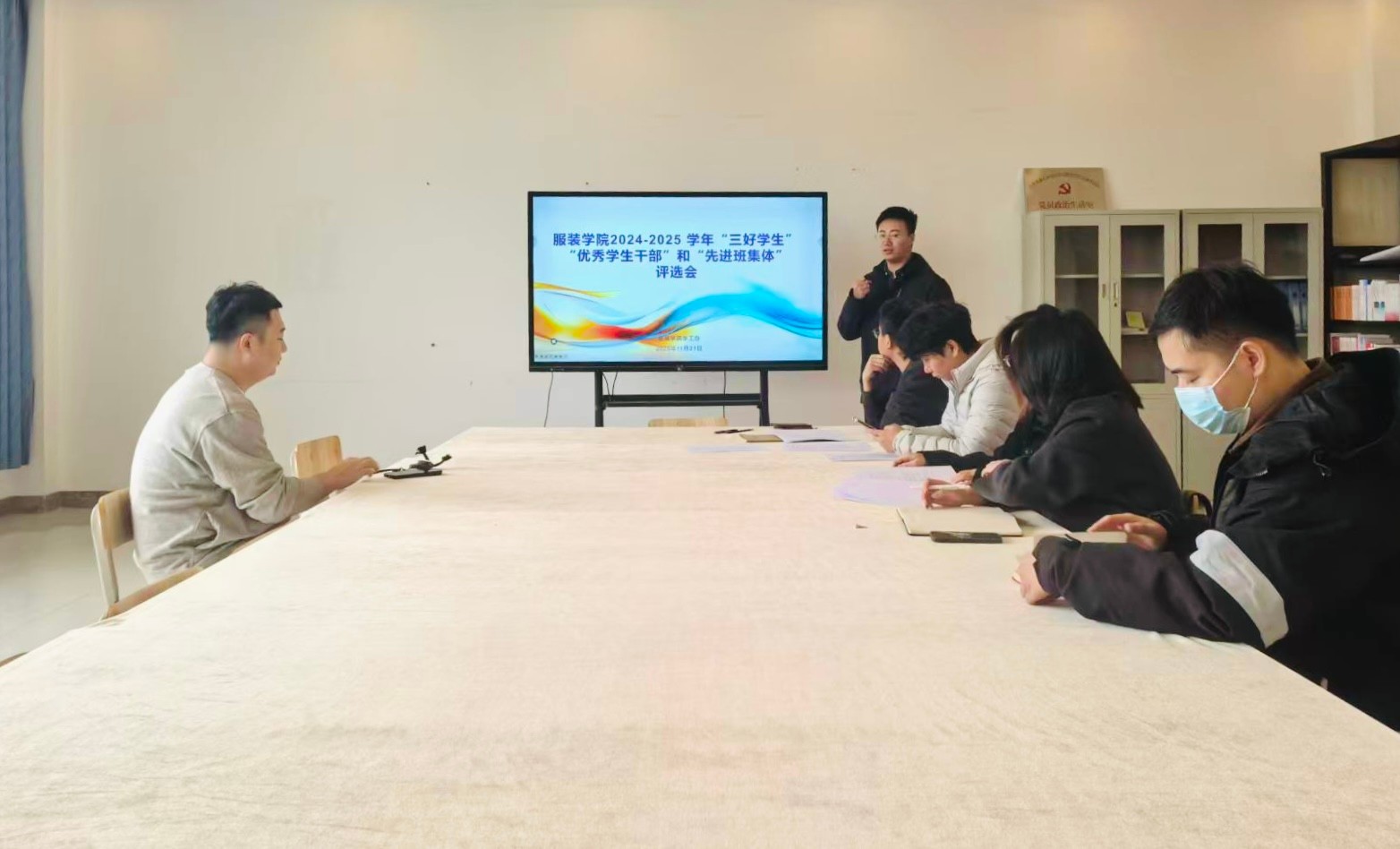 21日上午,服装学院学工办组织召开2024 - 2025学年“三好学生”“优秀学生干部”及“先进班集体”评选会,参会领导有服装学院党支部书记曹永攀、服装学院副院长郝士杰学工办主任曲忠成、综合办主任严嘉宝以及2022、2023、2024级班级辅导员。会议由学工办罗春霖老师主持。会上,曲忠成老师介绍了此次评选条件和要求,此次评选秉持公平、公正、公开的原则,通过学生自荐、班级民主评议、班主任推荐等环节,广泛吸纳各方意见。评审组严格对照评选条件,审慎筛选,最终确定院级三好学生23名,拟推荐校级三好学生11名,同时拟推荐2个先进班集体。