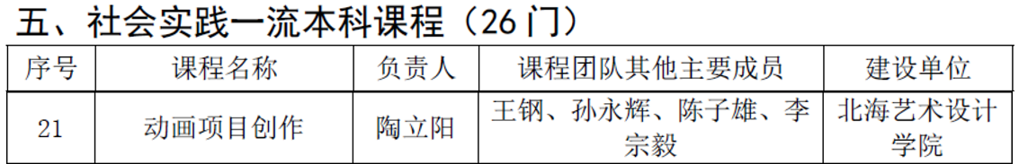 近日,根据《自治区教育厅关于公布第三批自治区级一流本科课程名单的通知》(桂教高教〔2022〕30号),我校李林平负责的 《广告设计》课程认定为自治区级线下一流本科课程、陶立阳负责的《动画项目创作》课程认定为自治区级社会实践一流本科课程。