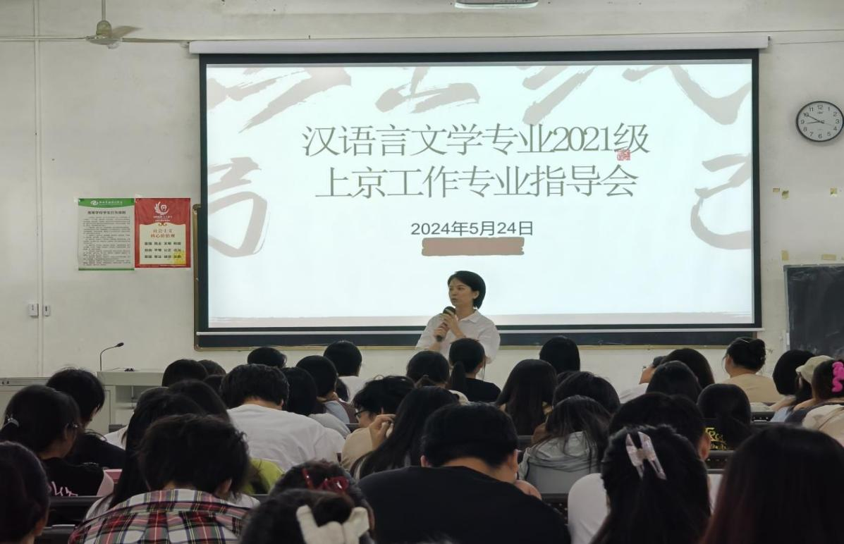 5月24日晚,汉语言文学教研室组织2021级学生在学校东校区觉悟楼106召开2025届汉语言文学专业本科生上京工作专业指导会。会议针对毕业生大四阶段在北京的课程安排、专业考察、毕业实习和毕业论文等各项工作展开详细讲解,帮助学生了解北京期间各项学习、实践任务。人文教育学院副院长梁镨文、汉语言文学教研室副主任姜玮及汉语言文学专业全体教师出席会议。会议由汉语言文学教研室主任蔡森主持。