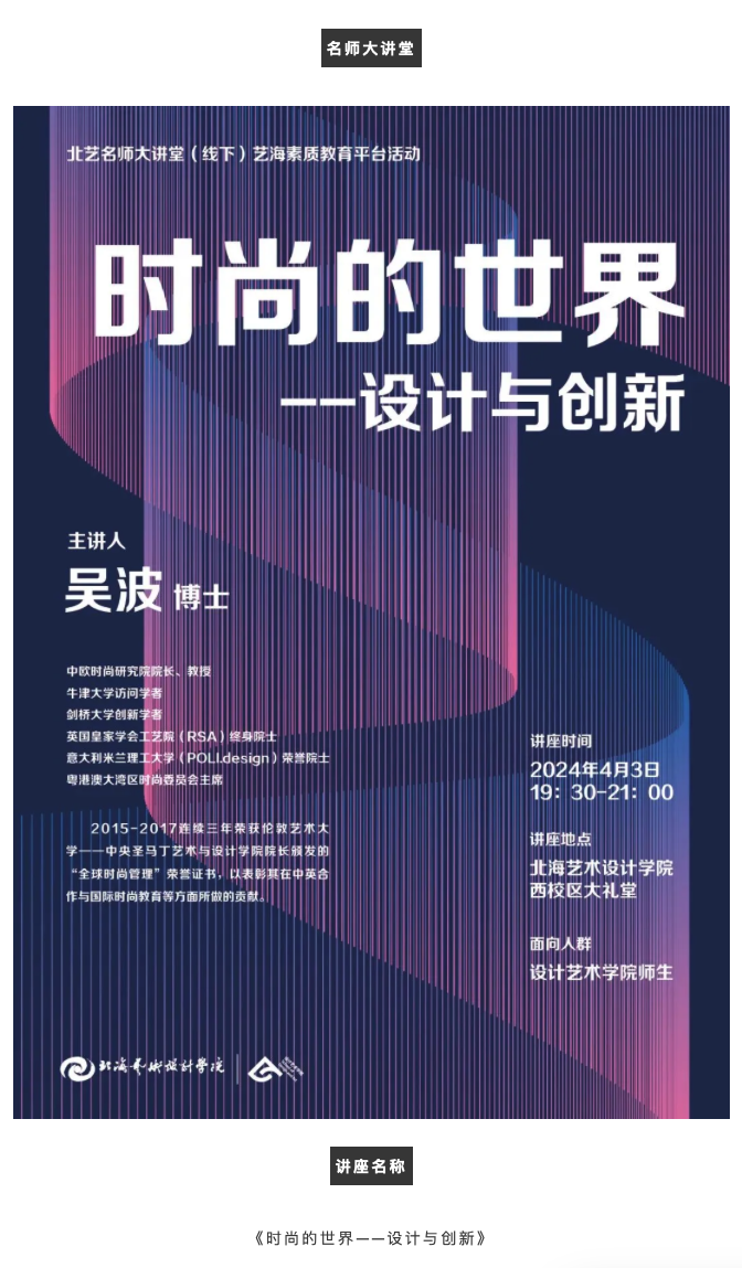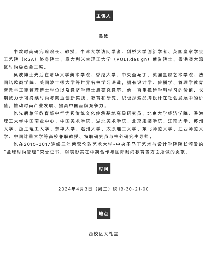 讲座预告|吴波《时尚的世界——设计与创新》