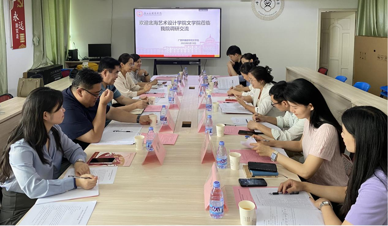 为进一步优化人才培养方案,提升人才培养质量,2025年5月19日文学院院长黄宇鸿教授带领学院专业教师团队一行6人,赴广西外国语学院文学院开展人才培养、专业建设调研交流活动。