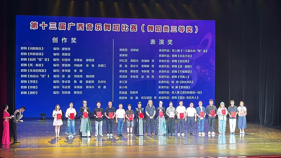 近日,由广西壮族自治区文化和旅游厅主办,柳州市文化广电和旅游局承办的第十三届广西音乐舞蹈比赛落下帷幕。本届比赛,全区共200余个舞蹈作品同台竞技,我院原创舞蹈作品《暮征-瓦氏夫人》以独特的历史视角和震撼的舞台呈现,在众多作品中脱颖而出,进入到决赛。最终《暮征-瓦氏夫人》凭借出色的表现,斩获此次比赛表演三等奖!