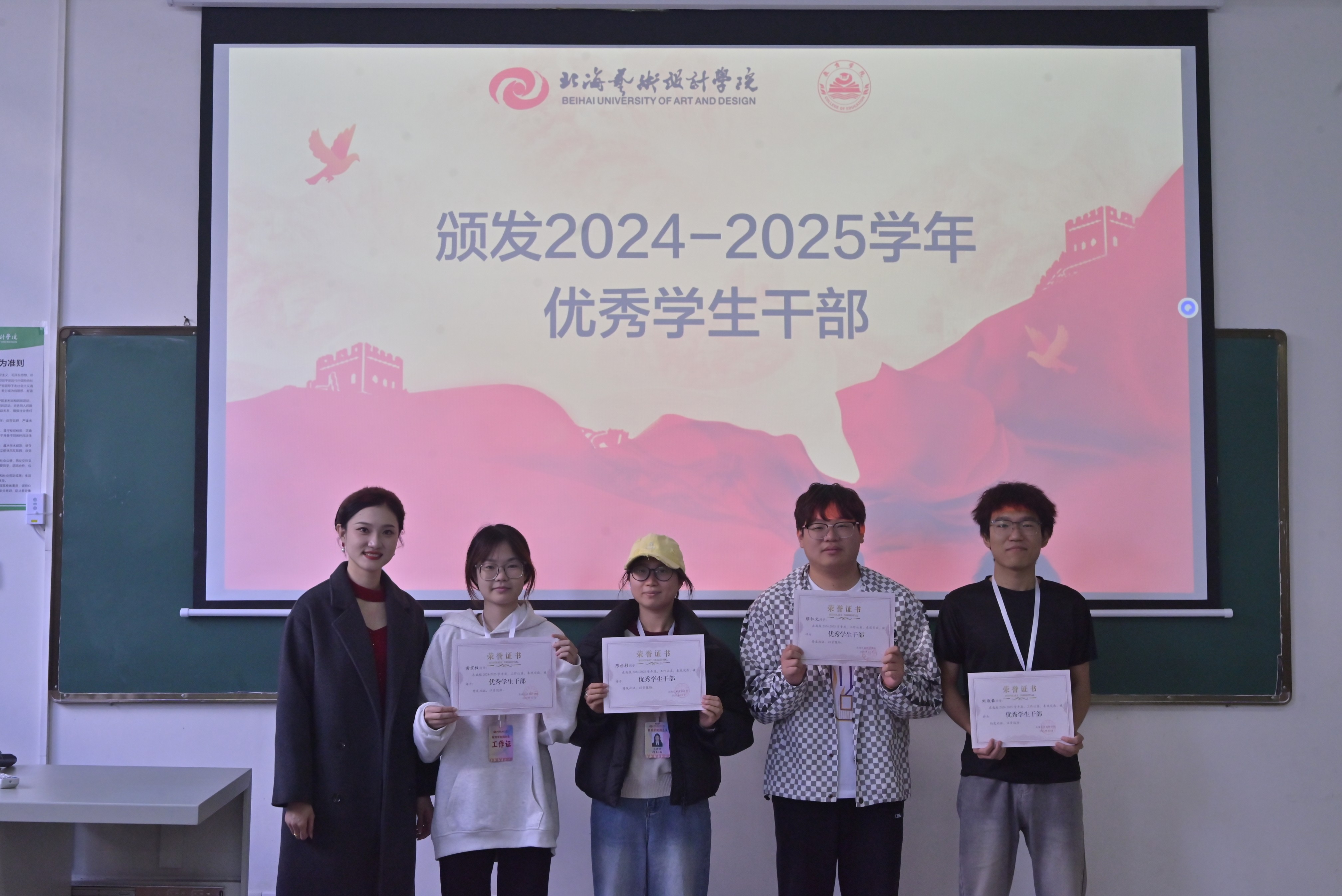 最后,颁发先进个人奖状以及2024-2025学年优秀学生干部。