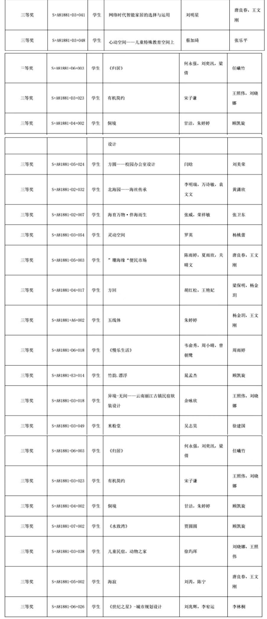 (三等奖获奖名单)