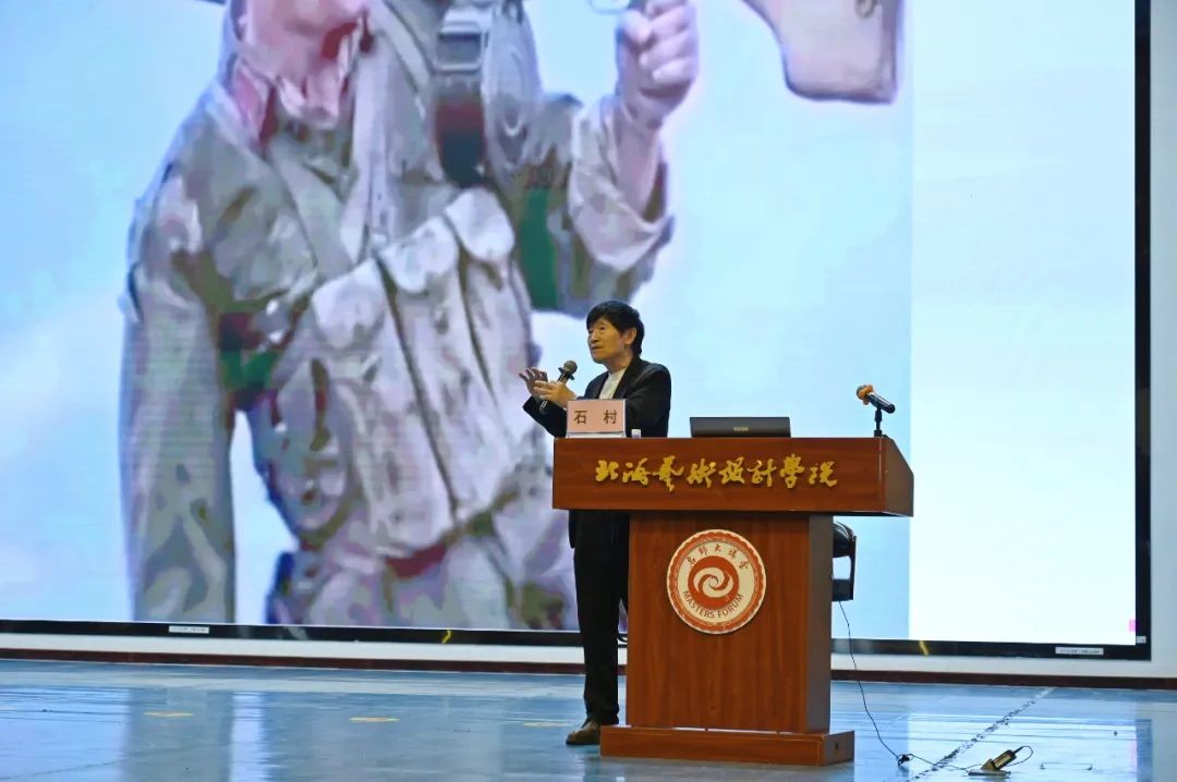 紧接着,石村教授指出主题性美术创作最主要的方法就是明确:艺术源于生活,但高于生活。因此平时要注意观察生活,在身边日常中汲取灵感,但要从生活上升到艺术层面,就要有表达积极向上的主题。同时,石村教授表示主题性美术创作的特征是从生活中取材,主题表达含蓄,所以大家要积极探索造型手法,学会运用寓意和象征来深化主题表达。